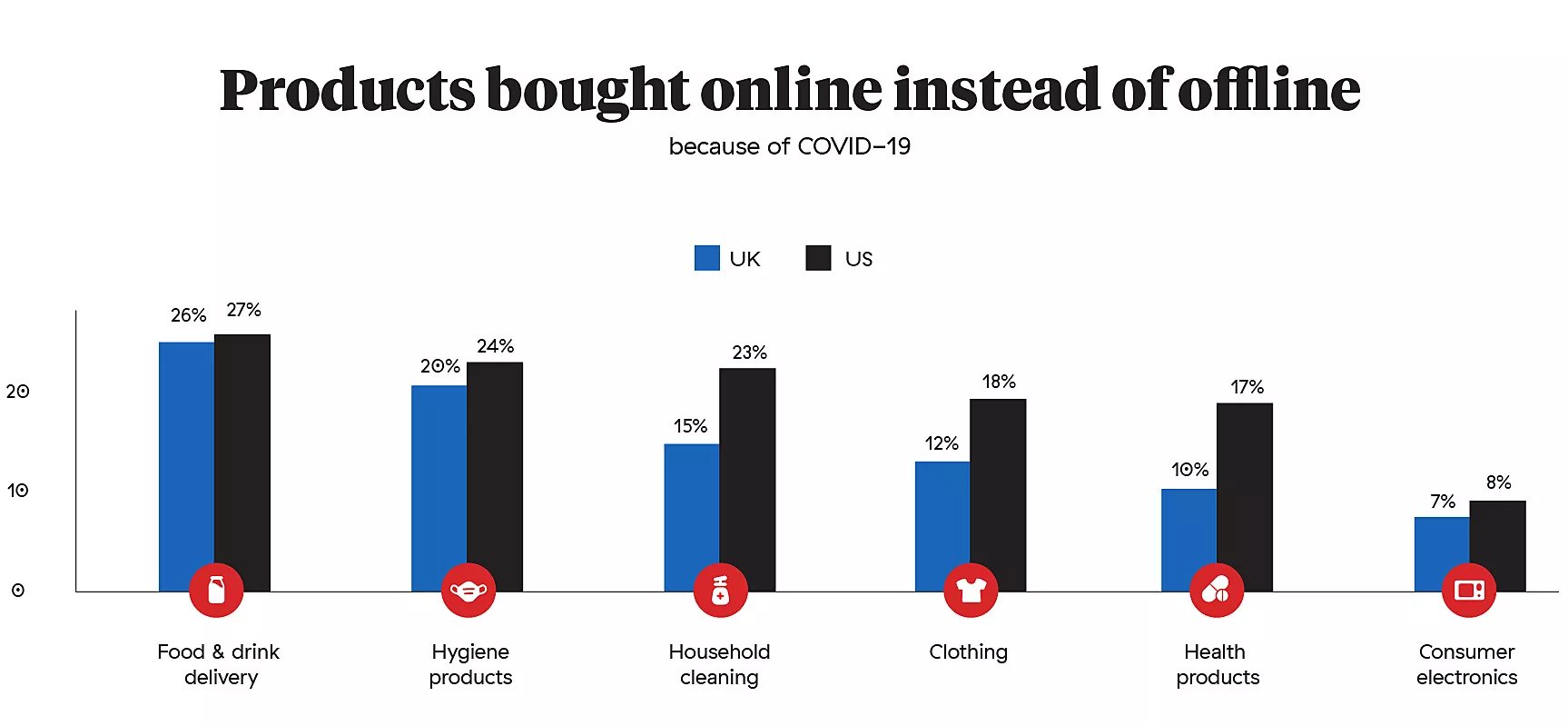 A survey from Competera we mentioned earlier shows that in the US, as many as 29% of buyers say that they will never engage in offline shopping; in the UK, 43% of consumers say that they expect to continue shopping the same way even after the lockdown is over.