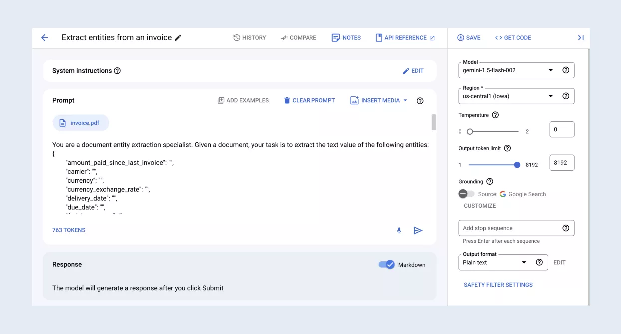 It’s very important how you prompt here. To extract the information you need regardless of the invoice format, you must be clear and concise. We need to tell the AI model what role it should play and be precise about the information we expect to get and its format.