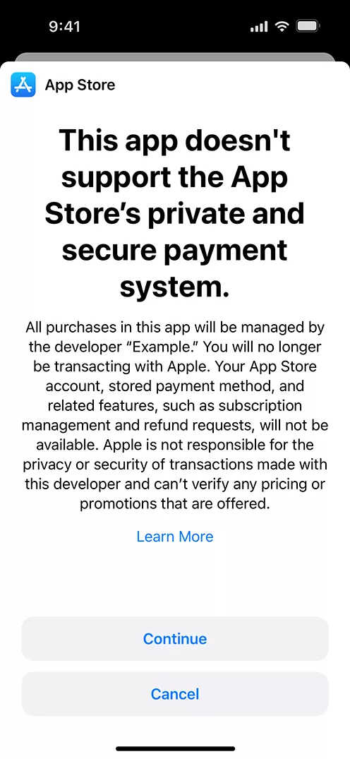 The existing rules impose a 30% (15% in the Small Businesses Program) fee per transaction. Under the new rules, that commission is reduced to 17% (10% for small businesses), with an additional 3% if using Apple’s In-App Purchase system. However, there’s a caveat. If you accept the new rules, you also pay the newly introduced Core Technology Fee, which is 0.50 euro for each first install after one million in a year.