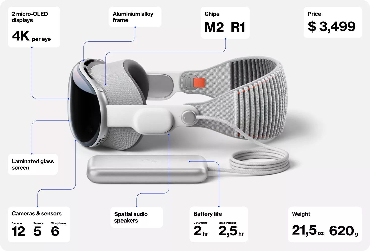 The word “Pro” suggests that Apple is targeting industry professionals. Many imagine people walking the streets with the headset, but such a heavy device with an external battery is clearly not designed for that.
