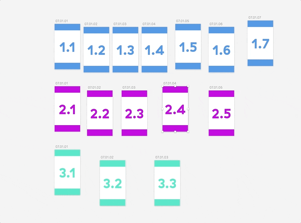 Rename It helps you rename artboards in an instance. We use numbers for naming artboards, the first part always starts with numbers (page.flow.state), and the rest is the name of the screen, e.g. 01.01. Onboarding – Step 1. Why so? Numbers are best for sorting, and when a client refers to a specific artboard, it’s easy to reference.
