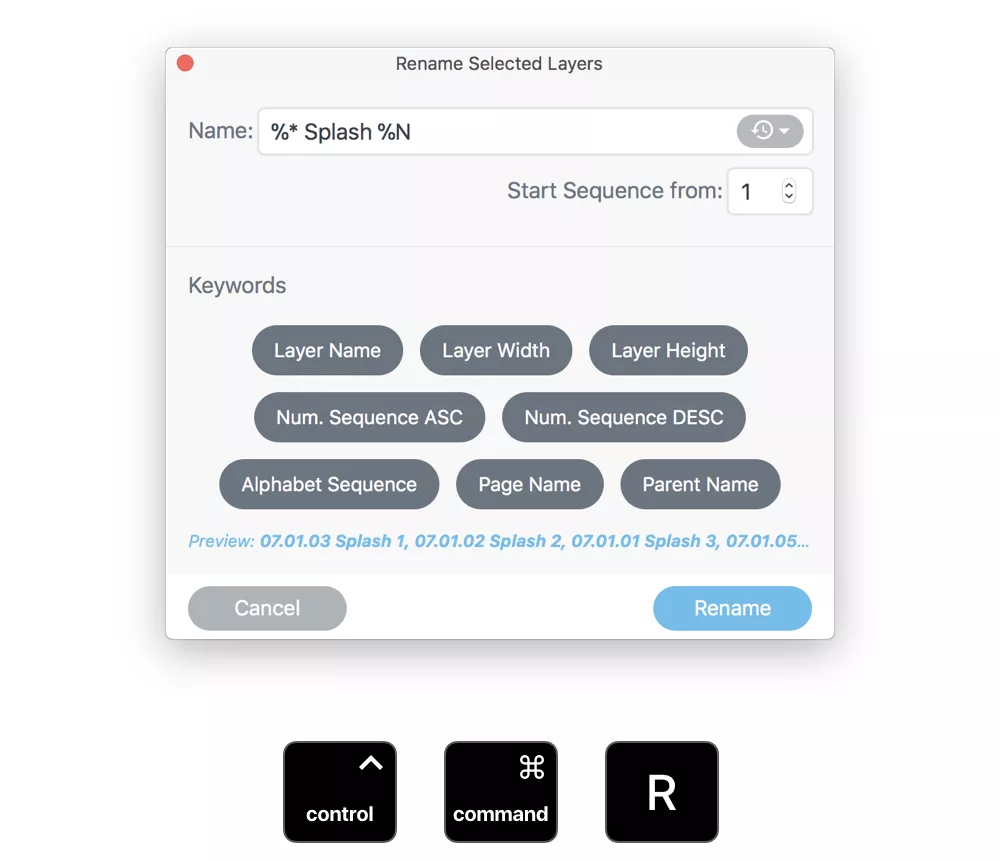 “Keep your Sketch files organized, batch rename layers and artboards”
