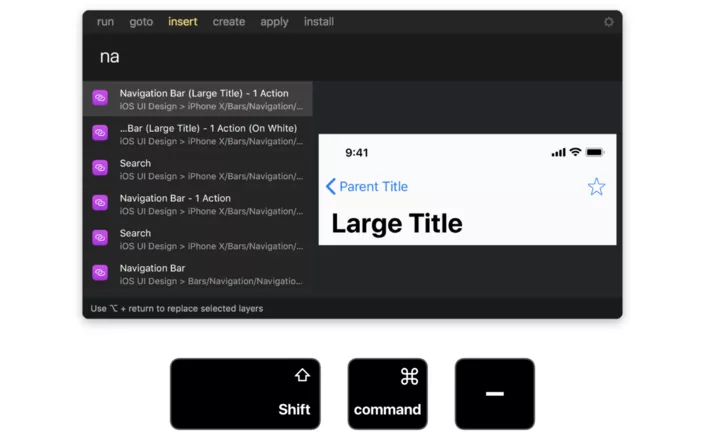 Sketch Runner is packed with features. I use it mostly to find and place Symbols. The Symbol preview is large and it’s faster to find one by its name. Just type a few letters, and it should pop right up. I also use it to install additional plugins.