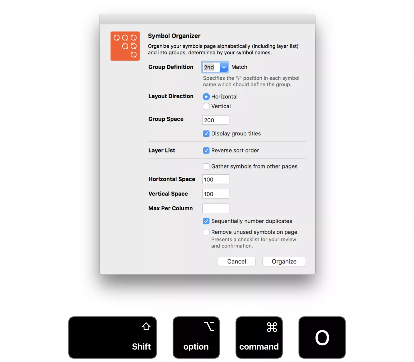 This is a must-have plugin for all designers that use Sketch. It helps sort Symbols page in a keypress. Just make sure you properly name your symbols, and Symbol Organizer will do the rest.