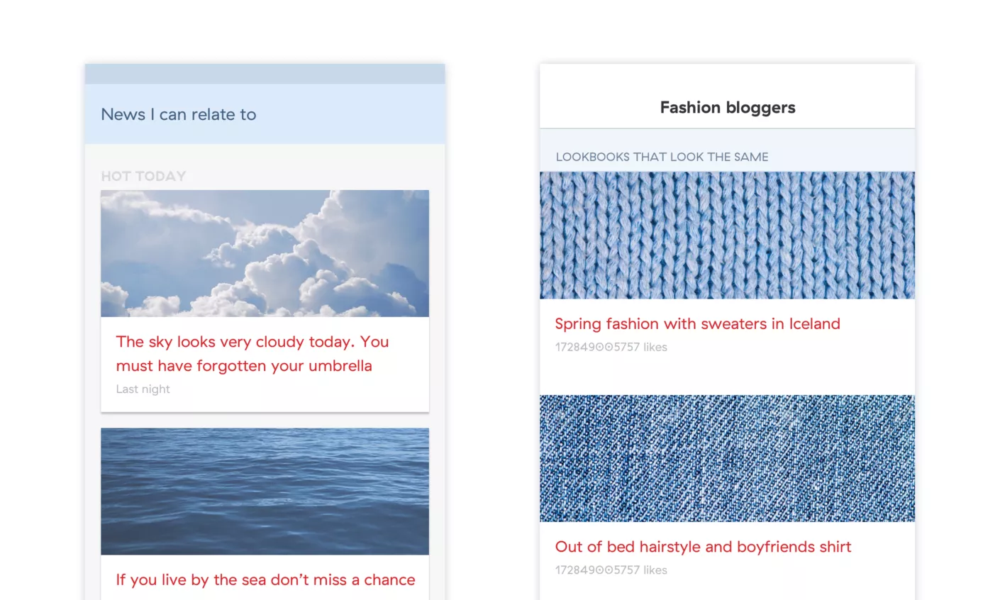 If you are designing a component with all sorts of data and actions, you should use cards. Cards are basically a data preview in a deeper navigation level. Material cards look more like physical cards, with shadows and rounded corners. iOS cards are basically table view list items, they are full width and often divided by a 1px separator.