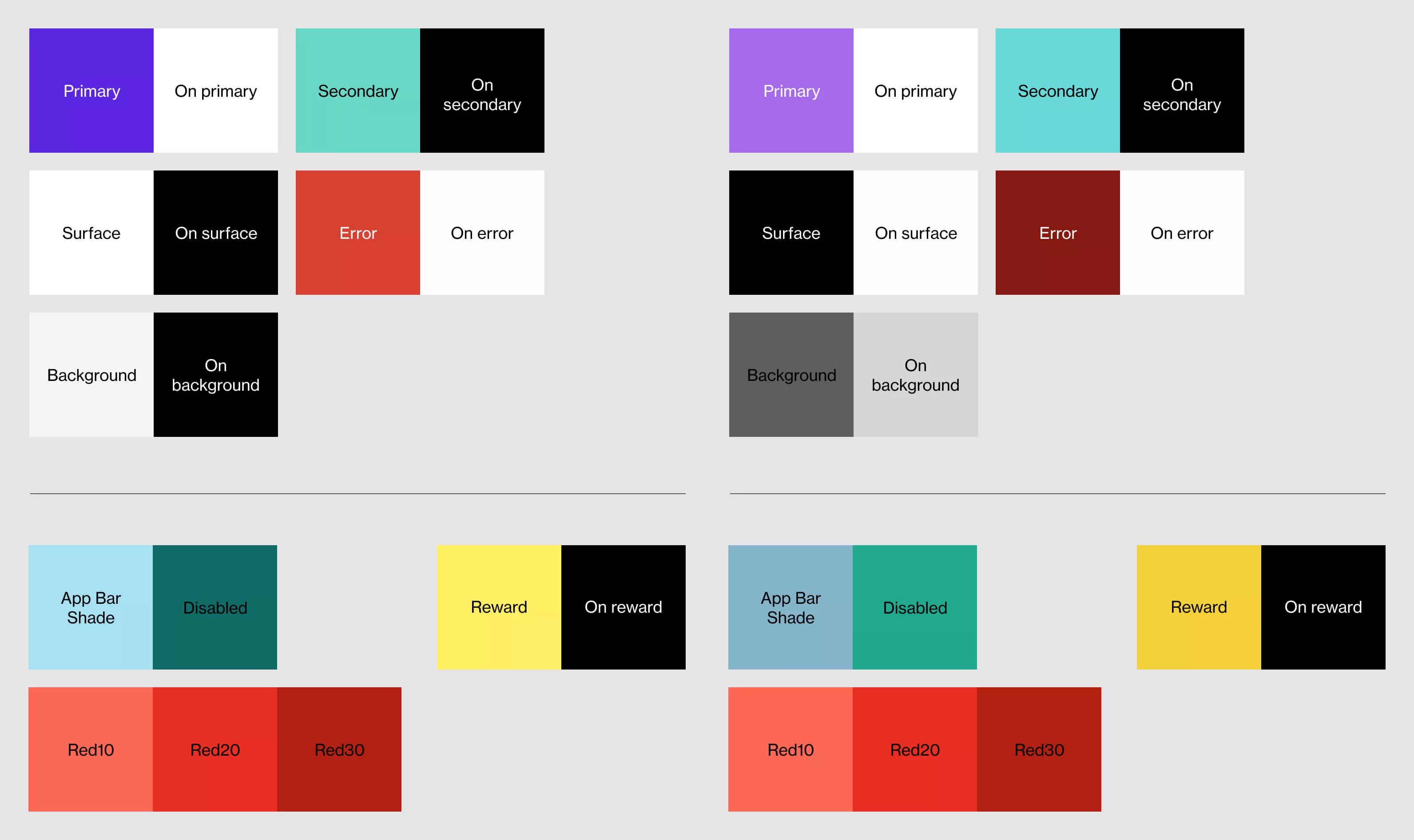 If you’ve set up correctly everything covered so far, adding multiple themes should be a walk in the park. Designers should duplicate the color scheme page and change the color values, and developers can then add that scheme as an alternative ThemeData. This means that if we want to implement a dark theme, it’s just a matter of making a simple change in one place, and there’s no need to go through every screen.