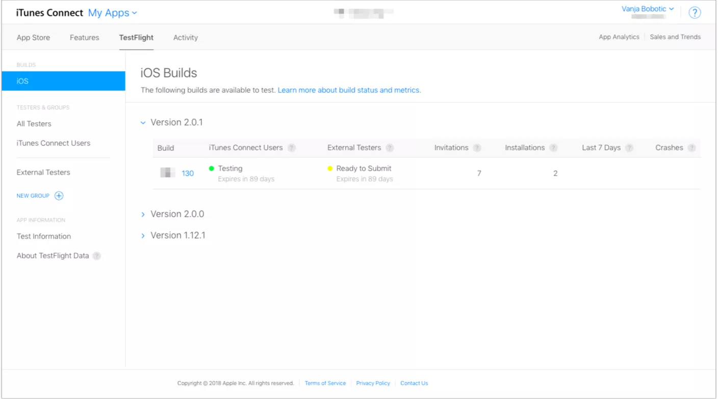 After submitting your app to iTC, you have to define who is going to test your application – internal or external testers. All selected testers will receive an email that allows them to download and install the app from TestFlight. This is a well-known service, now owned by Apple, for installing and testing apps prior to publishing.