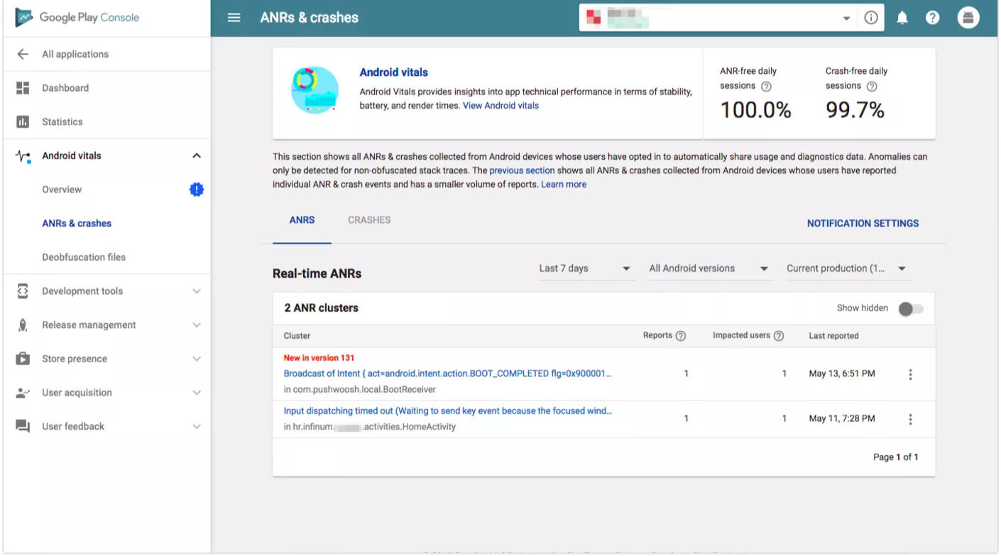 GPC’s ANRs & Crashes section offers insights that help you recognize exactly where the app is misbehaving. Apart from the basics, you can receive a stack trace and other valuable info attached to each logged issue. Also, you’ll see a little message that says, “New in version x,” if the crash never occurred in any previous Android version. Pretty cool.