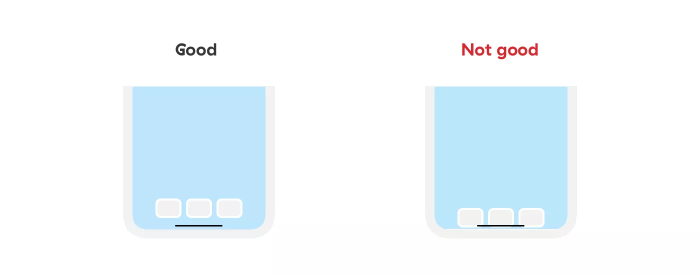 Don’t place controls at the bottom of the screen. If your app uses custom bottom UI controls, they should be constrained to bottom safe area layout guide, while their superviews can be constrained to the edge of the screen.
