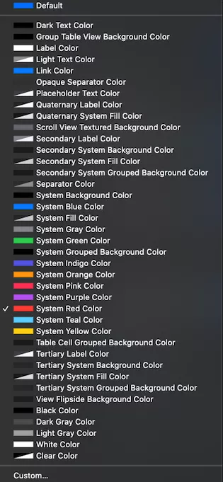 Same as with the static colors before, these can be easily selected from the storyboard/xib: