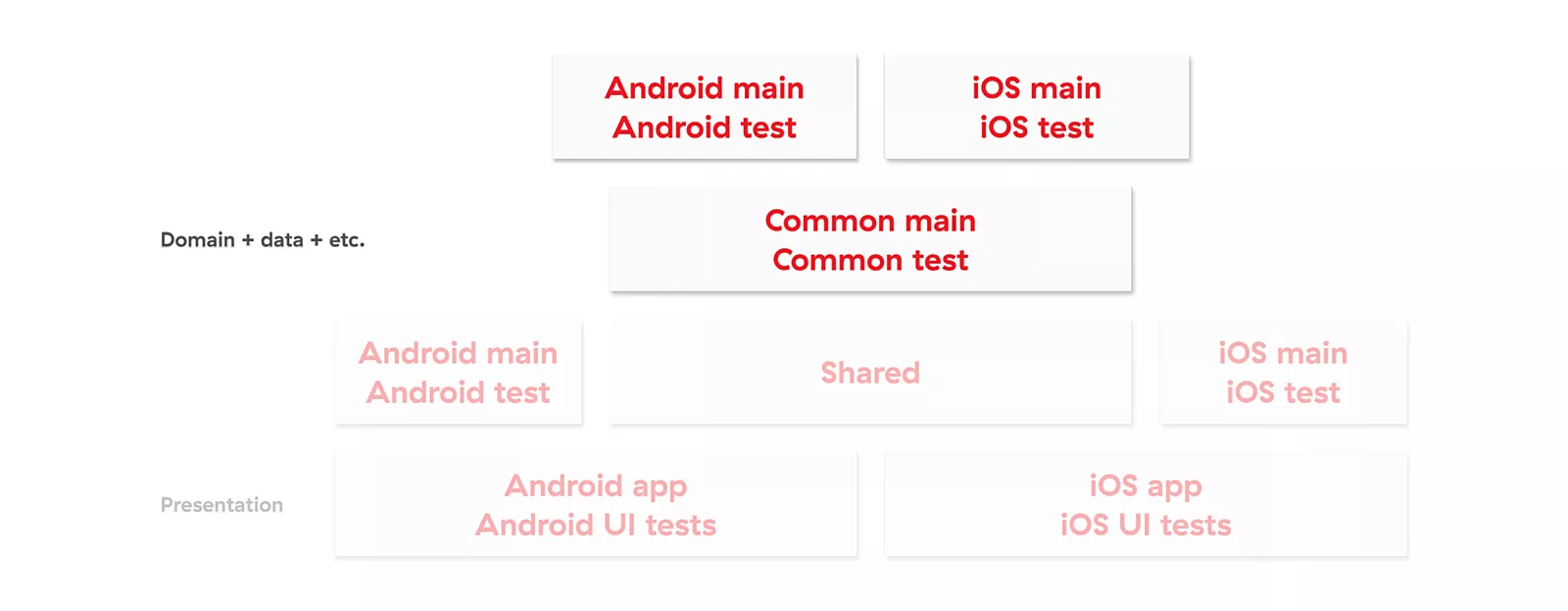 Sometimes, you need to write platform-specific code, usually when the implementation is impossible to share between platforms, for example, when access to the device’s hardware is required. In those cases, you can have a separate implementation in the Android part (main and test) and another one in the iOS part (main and test).