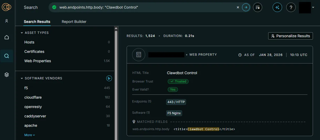 This is not a hypothetical risk. A simple Censys query reveals more than 1,500 publicly exposed, unauthenticated Clawdbot instances. These real-world deployments grant unrestricted access to anyone who stumbles across them.