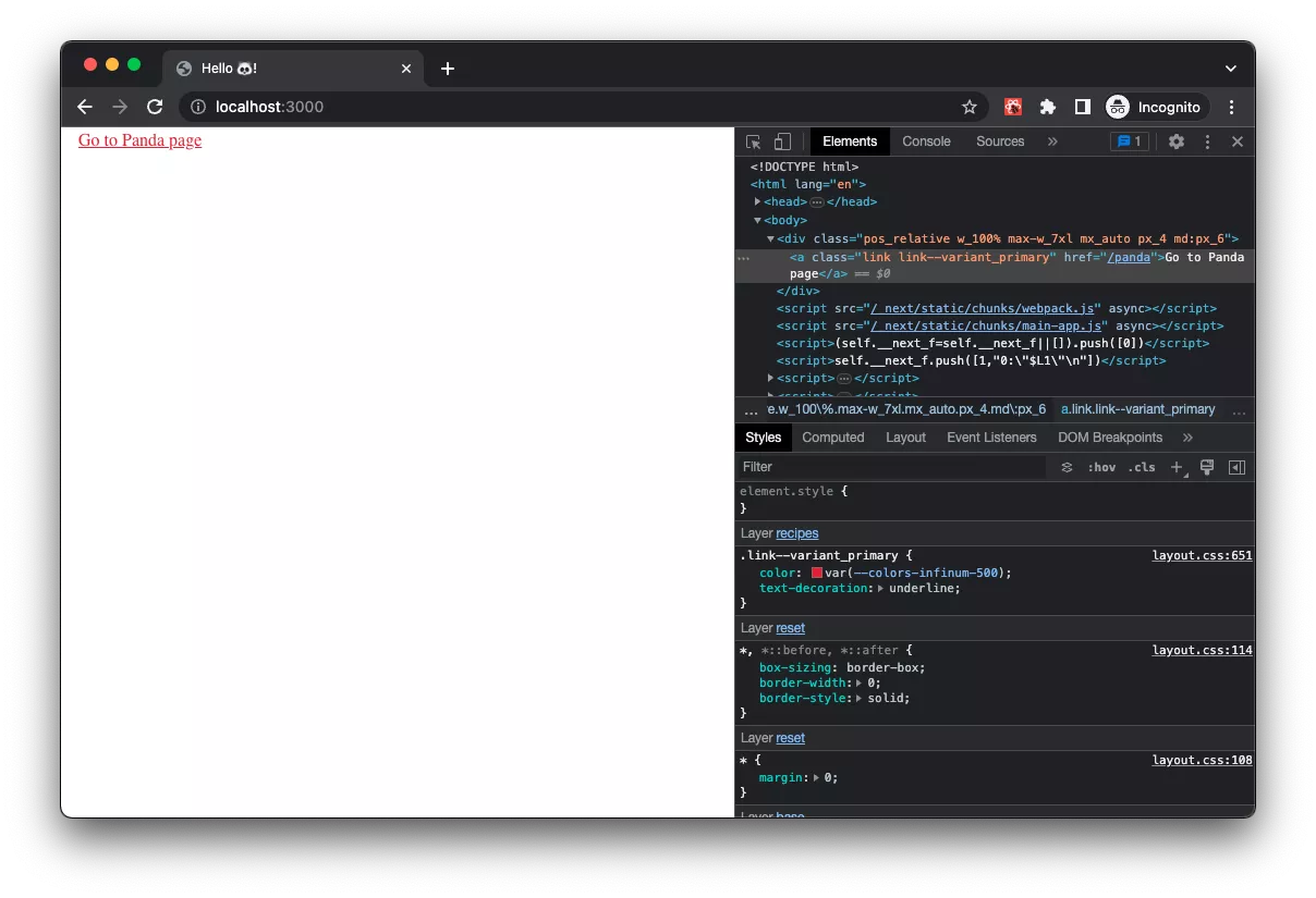 Then, we need to create a custom Link component and apply the recipe. We will also use Next.js Link component as the base: