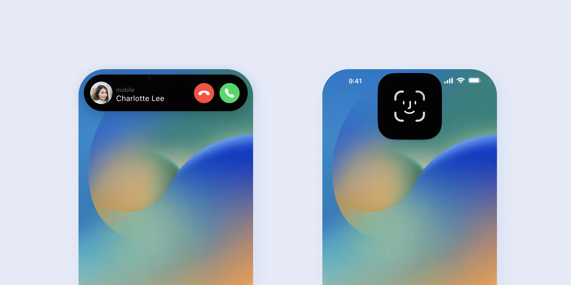 This view also appears when a live activity requires a user’s action, such as an incoming call or a FaceID authentication.