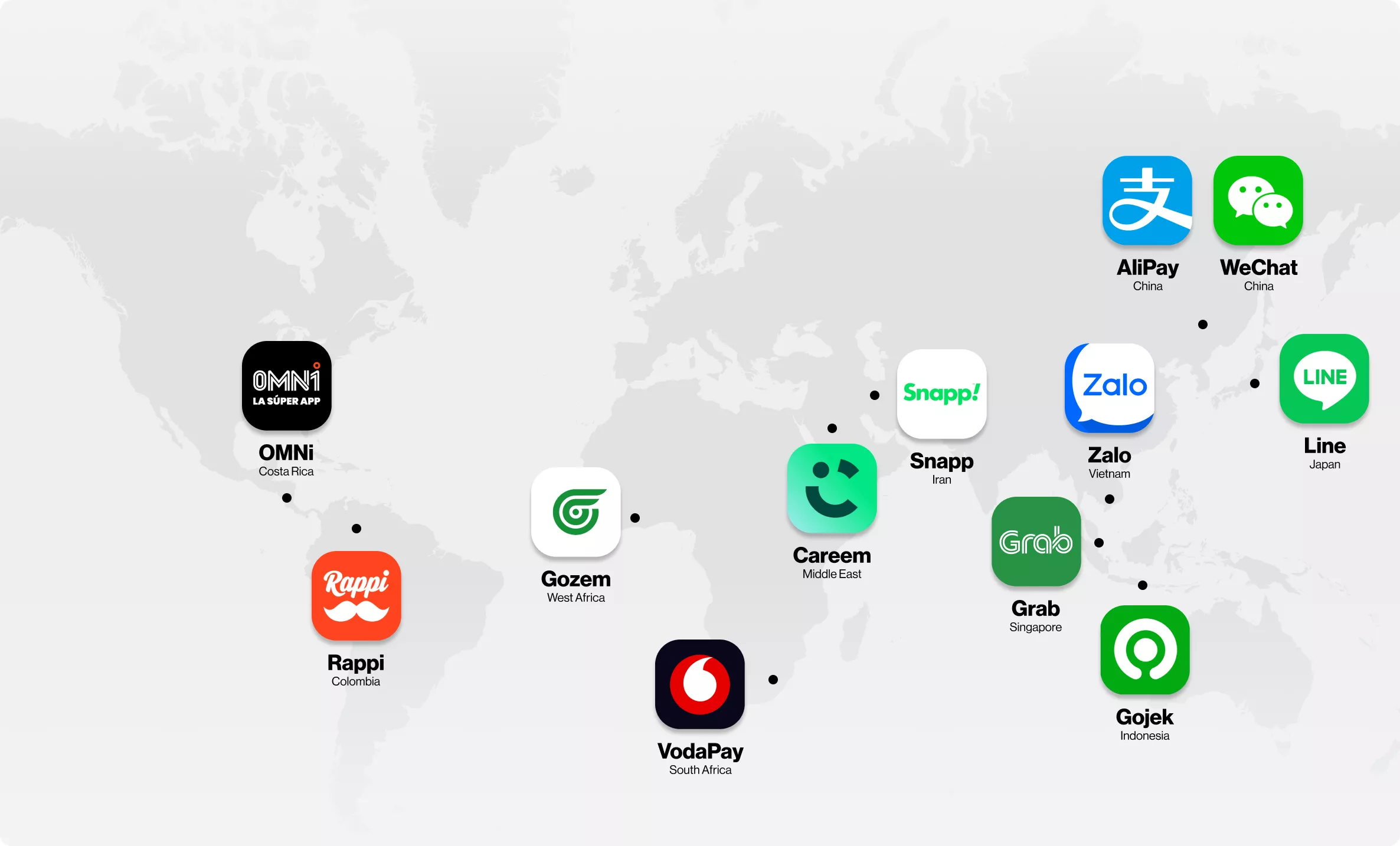 We can easily notice how super apps tend to thrive in some areas of the world, and not others. All of the biggest ones originated in Asia or South America, while North America and Europe have yet to supply their contenders in this category.