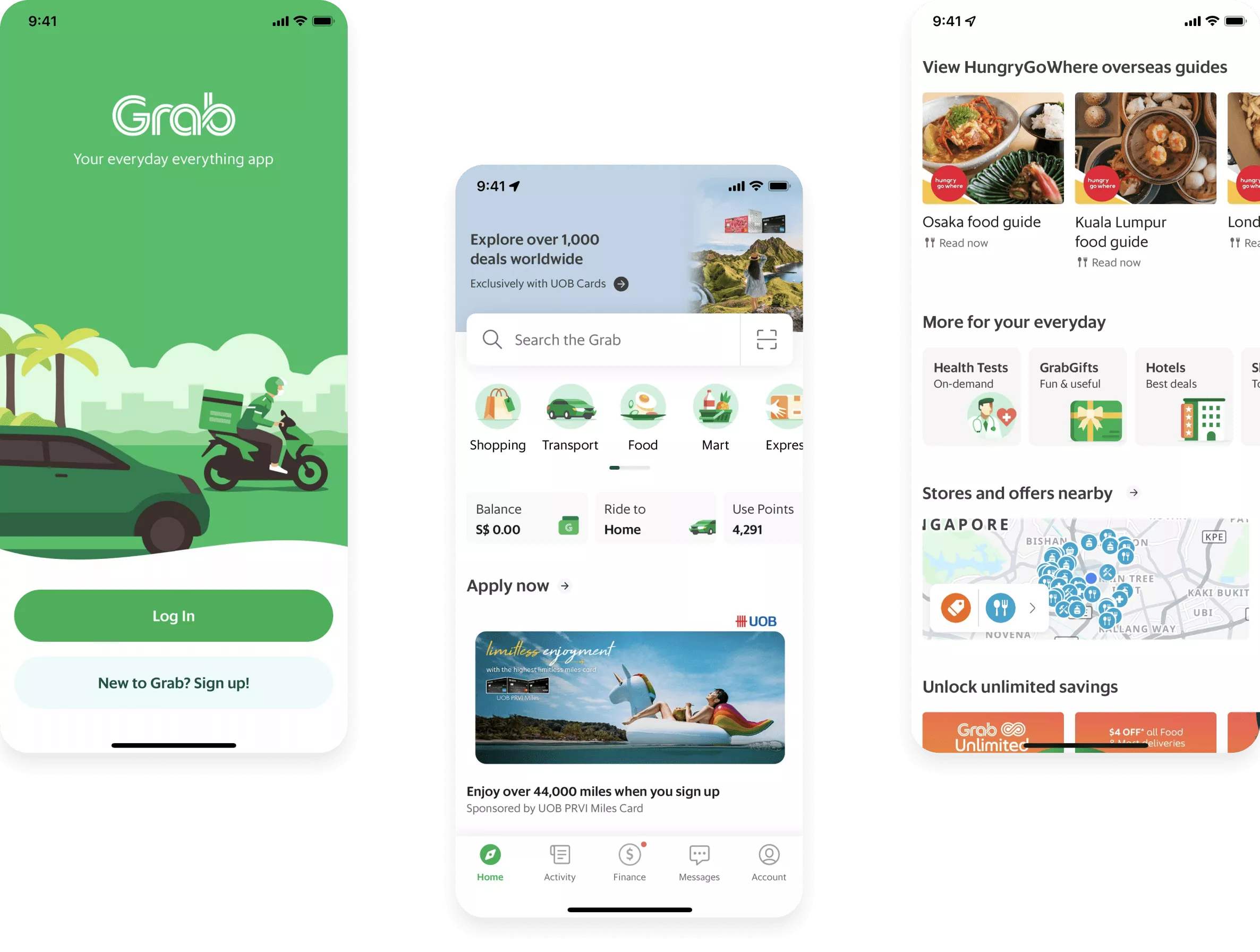 Offers a wide range of services across 12 countries. Its features include car rentals, taxis, bike-sharing, food delivery, retail, payments, etc.