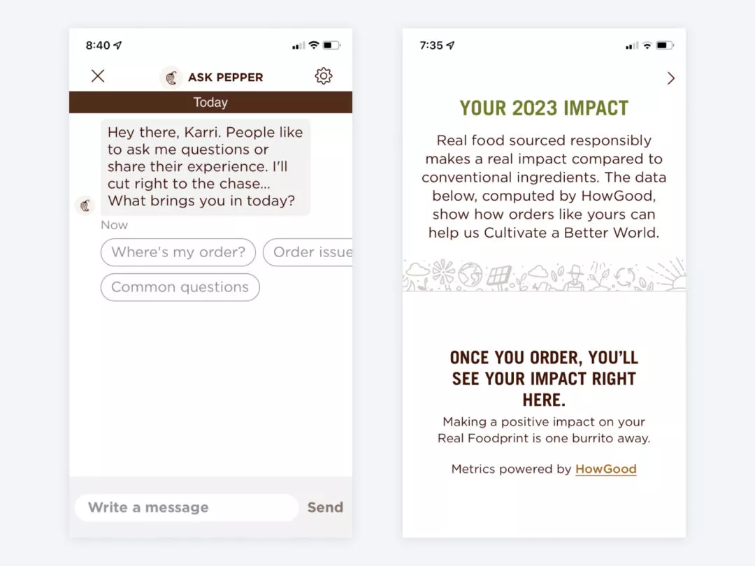 Another example of deep delight that Kerrin offers up is the Chipotle app. Like other ordering apps, it offers rewards, remembers your previous order, and more than anything, makes ordering convenient. But this app delivers delight because of its surprising features. For example, it can show you how your carbon footprint is impacted by ordering organic ingredients. (Which makes the customer feel good and reflects well on Chipotle.)