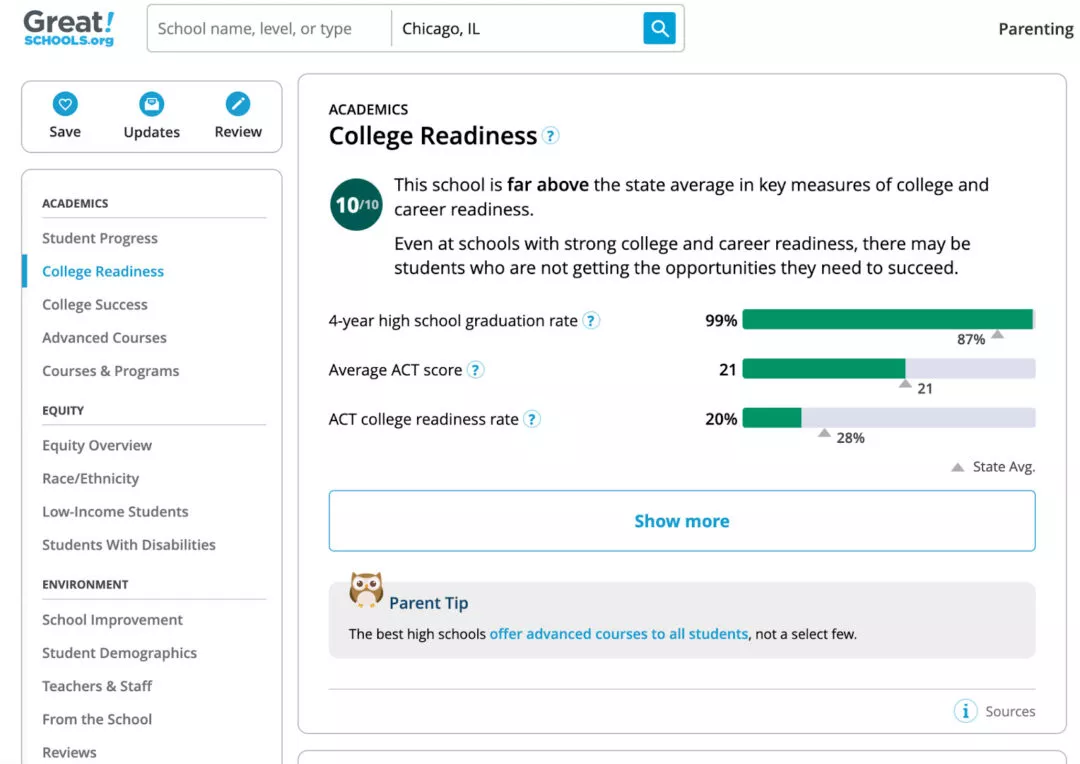 Aside from the breezy functionality, there are Parent Tips to offset the charts (and another owl!) making interacting with Great Schools a delight. On a site where users can be expected to spend a lot of time, this attention to detail is important to lowering barriers and keeping the user in a state of flow.