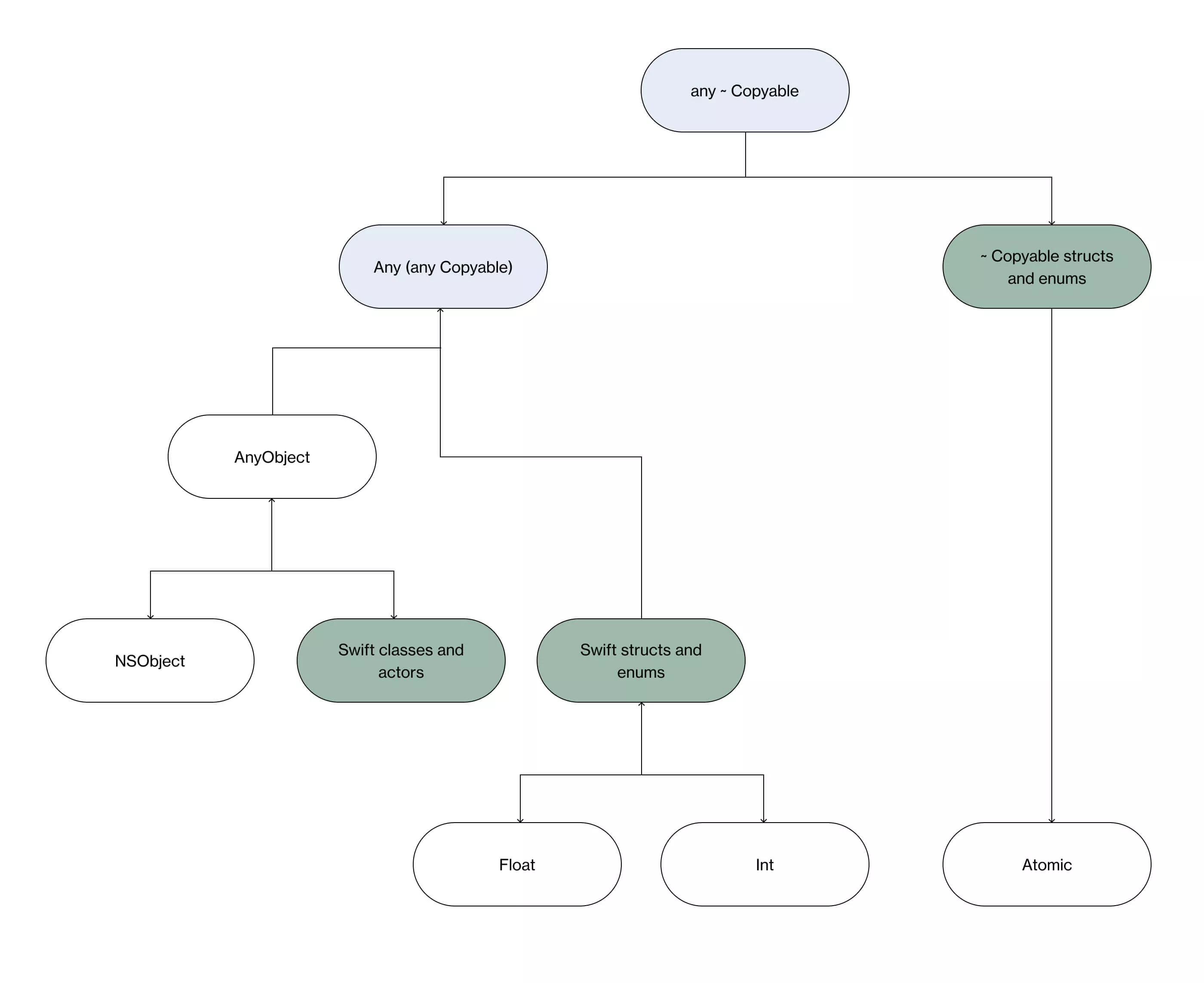 The naming of this feature is somewhat unfortunate and has also caused some confusion, especially when used in Swift’s generics system. The main challenge was to establish a syntax that clearly communicates the suppression of default Copyable conformance.