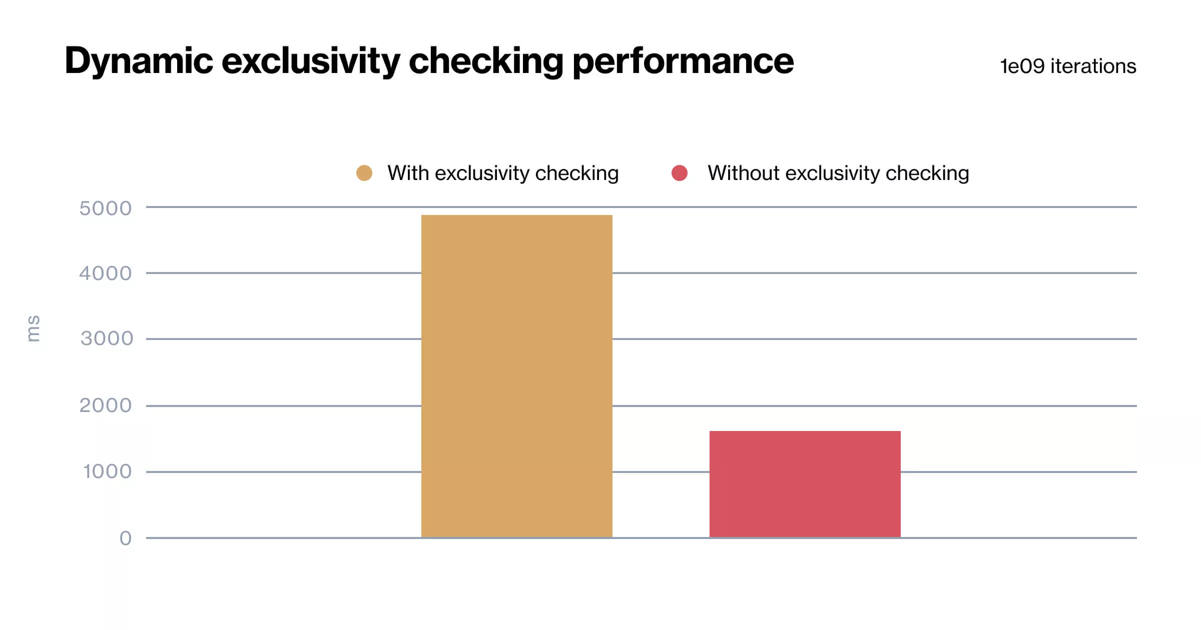 The following chart shows the overhead of exclusivity checking when accessing class property:
