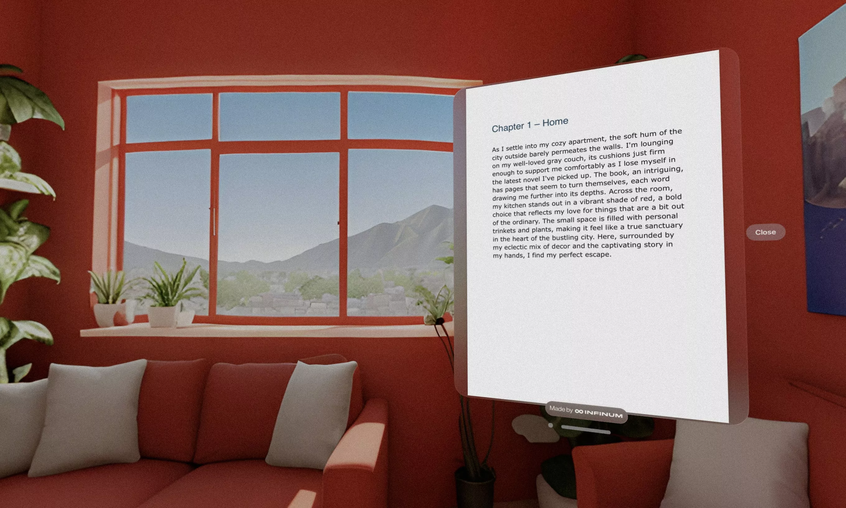 Our Apple Vision Pro proof of concept utilizes generated images to change the user’s environment in line with the content they are reading. This makes for a truly immersive experience, one in which the reader feels they are a part of the story.