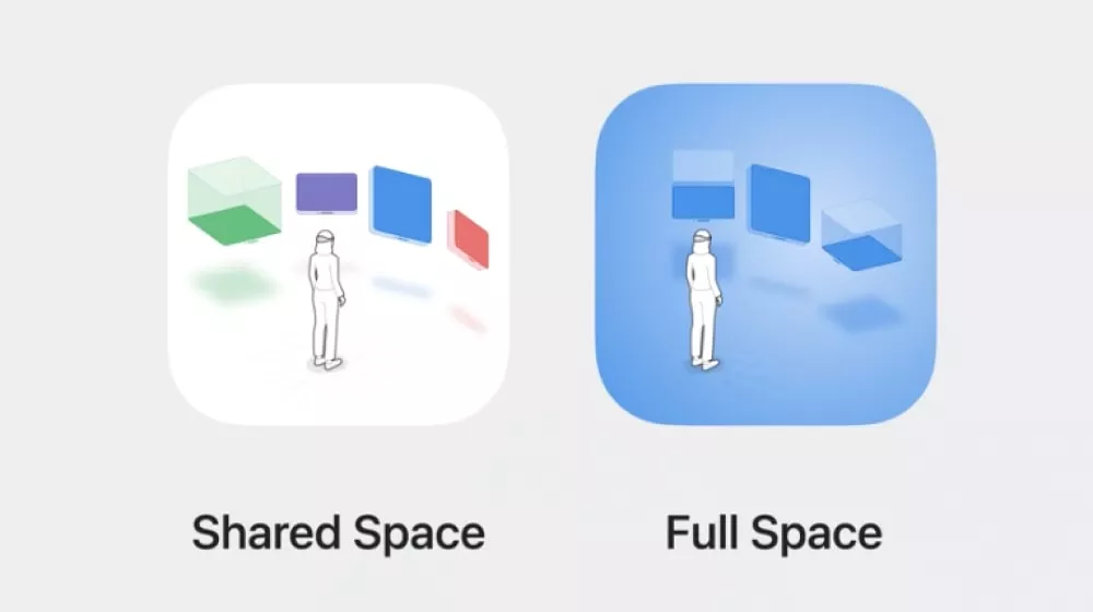 Finally, we have spaces. By default, every Vision Pro app opens in a shared space. Think of it as a space that is shared between apps, just like with a desktop experience.