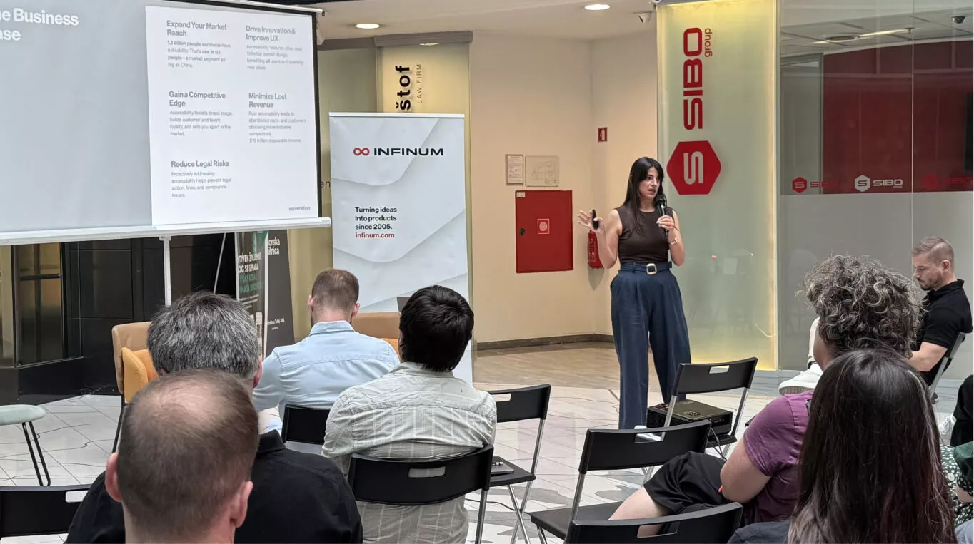 Ana has been at Infinum for seven years, starting in QA and spending the last three and a half as a Product Owner. She’s worked on over 40 projects and has led Infinum’s accessibility efforts since 2021, organizing workshops, giving talks, and creating handbooks. Last year, she earned IAAP CPACC certification, becoming one of just three people in Croatia to do so. Outside of work, she’s learning sign language to keep making the world more inclusive.