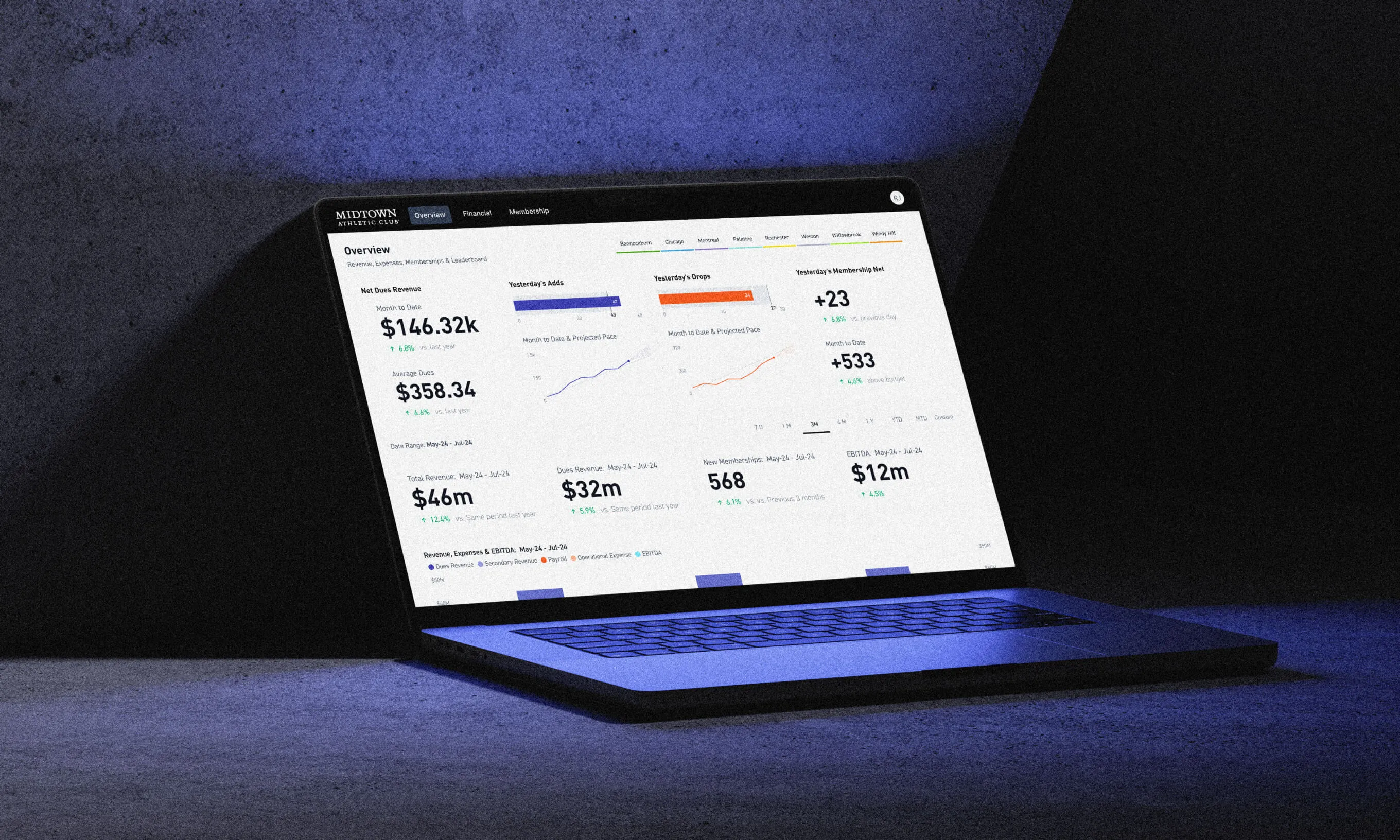 In collaboration with Midtown Athletic Club, we designed and developed a business intelligence platform fit for a premium fitness brand.