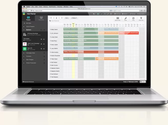 For scheduling, we use a great tool called Hub Planner. It is used by other digital agencies like F-I, but also branding agencies like the Flamingo group, creative agencies like Goodsir and even product companies like Mobify.
