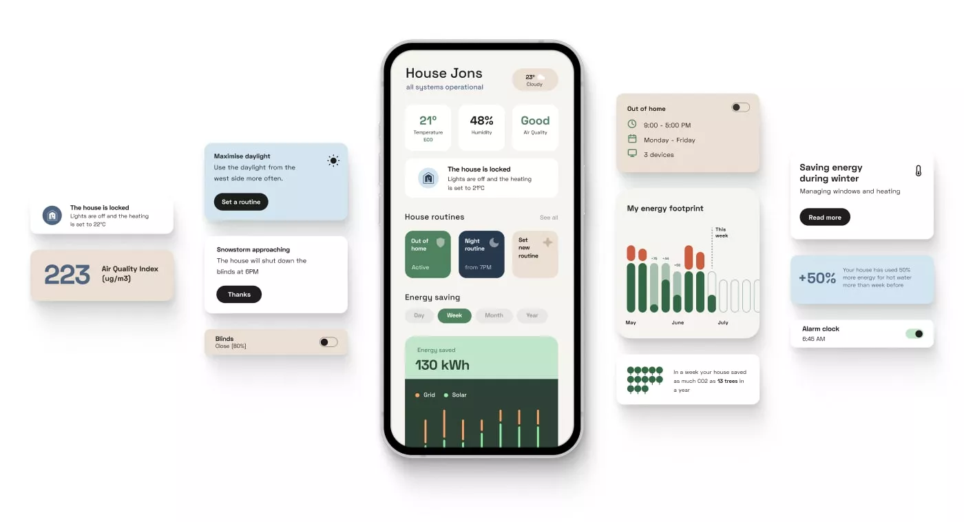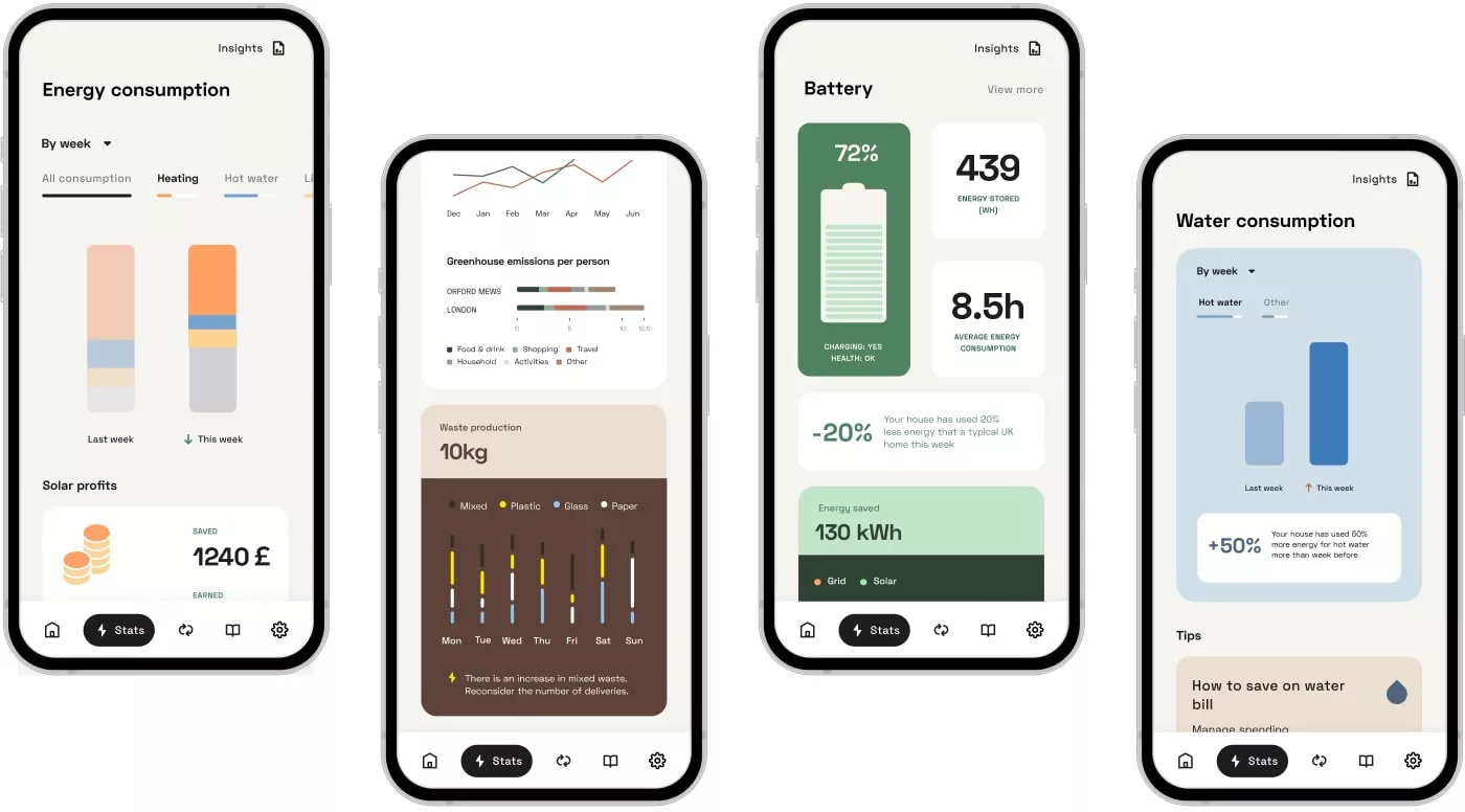We wanted to make sure that making green decisions is simple, and the way to achieve that would be to provide the residents with clear insights. The simple and user-friendly design (inspired by the architecture and the materials used themselves!) ensures all charts and graphs are easily readable at a glance.