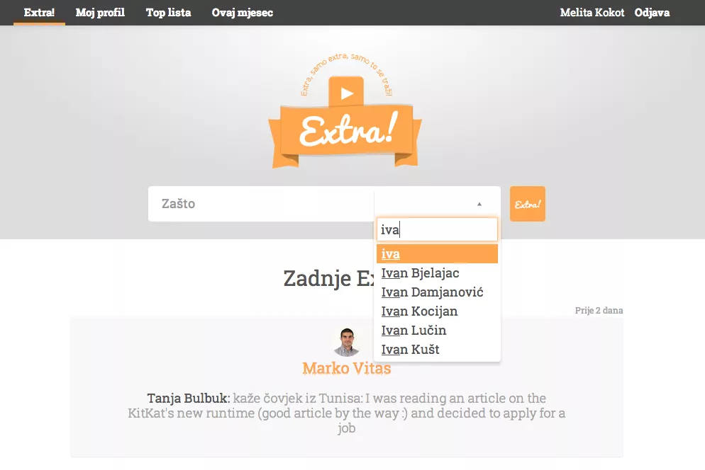 The idea for an application was left sitting in a corner for a while, but when I joined the Infinum team last summer as a new Rails developer, my mentor decided to put it into action. My first assignment to learn the ropes was to build a simple Ruby on Rails application called Extra. After I successfully finished the project, I was awarded my first Extra.