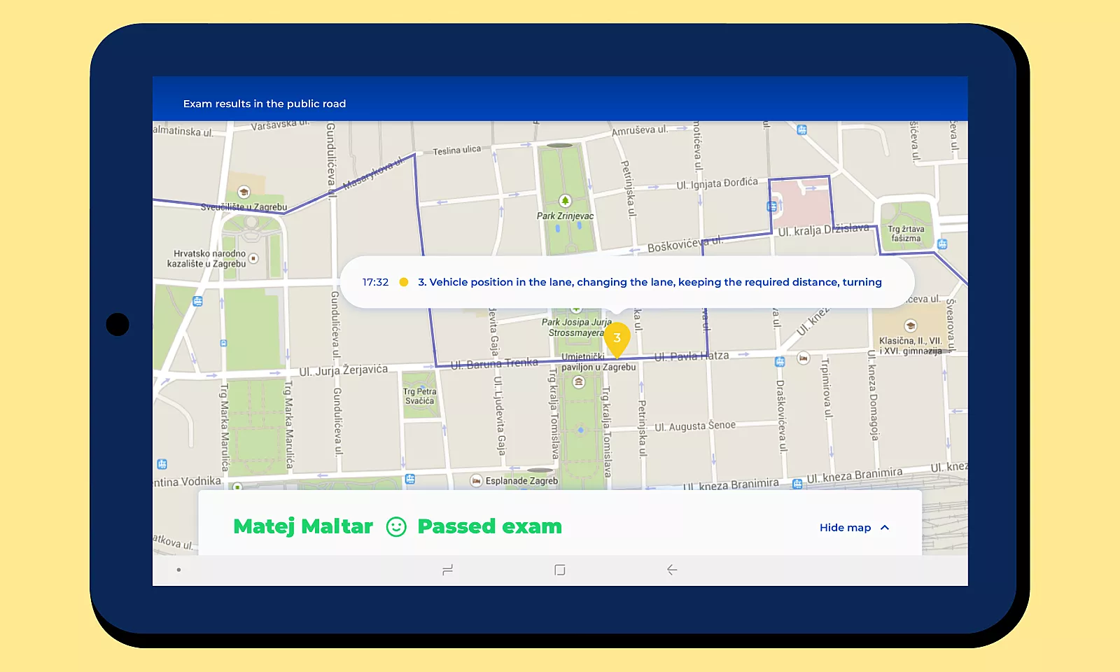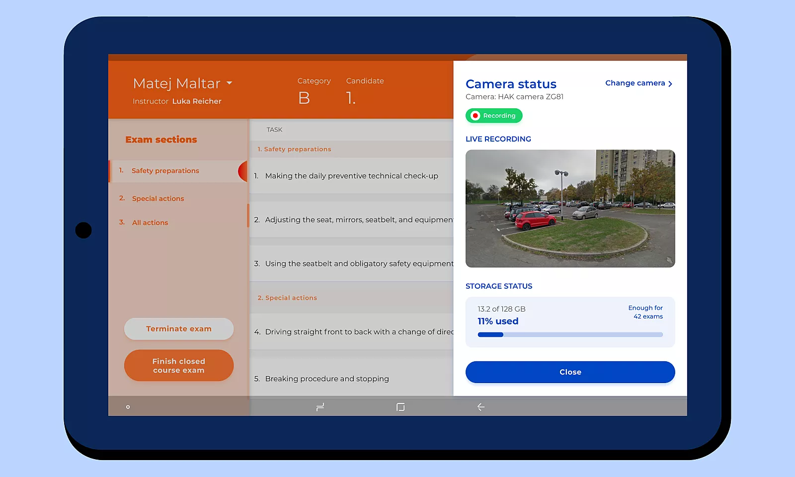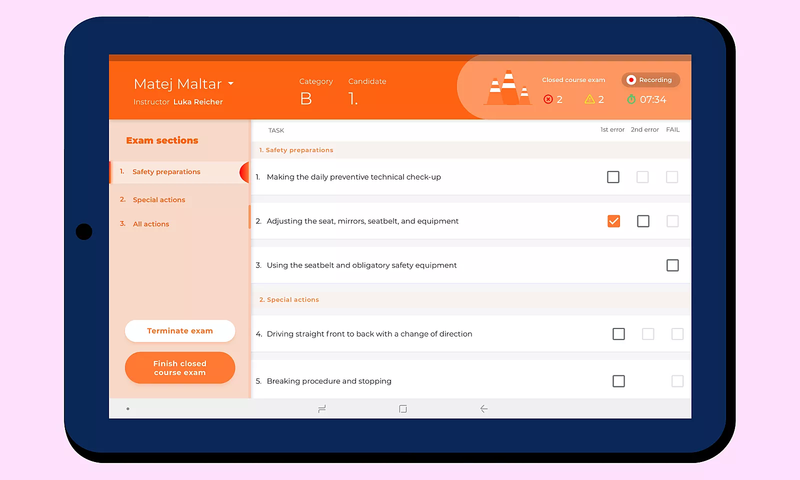During a typical driving exam, the examiner has to go through a substantial amount of paper forms and checkboxes to grade the candidate’s skills, all the while watching the road, signs, traffic, and the candidate’s behavior. Specialized vehicles, such as trucks, trams, and buses, require additional paperwork!