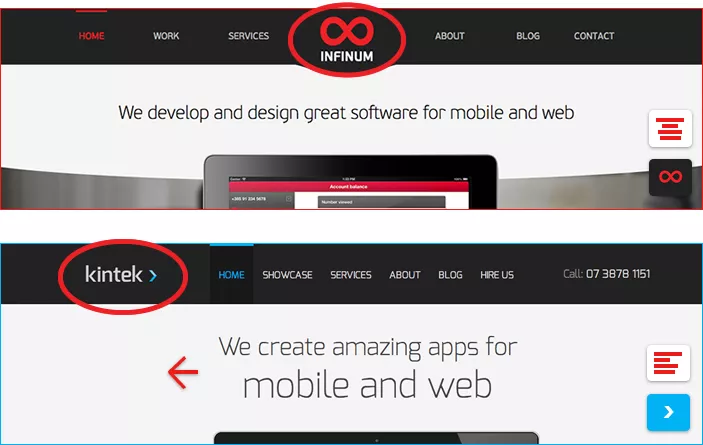 On the Infinum website, the brand logo is centred for a reason – because all the other primary content items on the page are also centered. The logo in your navigation is left aligned, so other elements should also be aligned left, for consistency sakes.