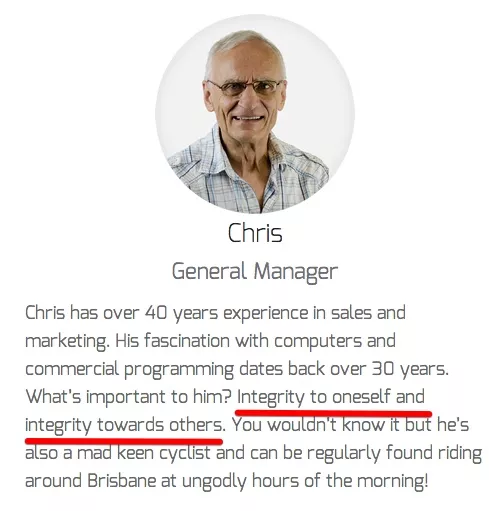 Like Chris, your General Manager says about himself on your website: