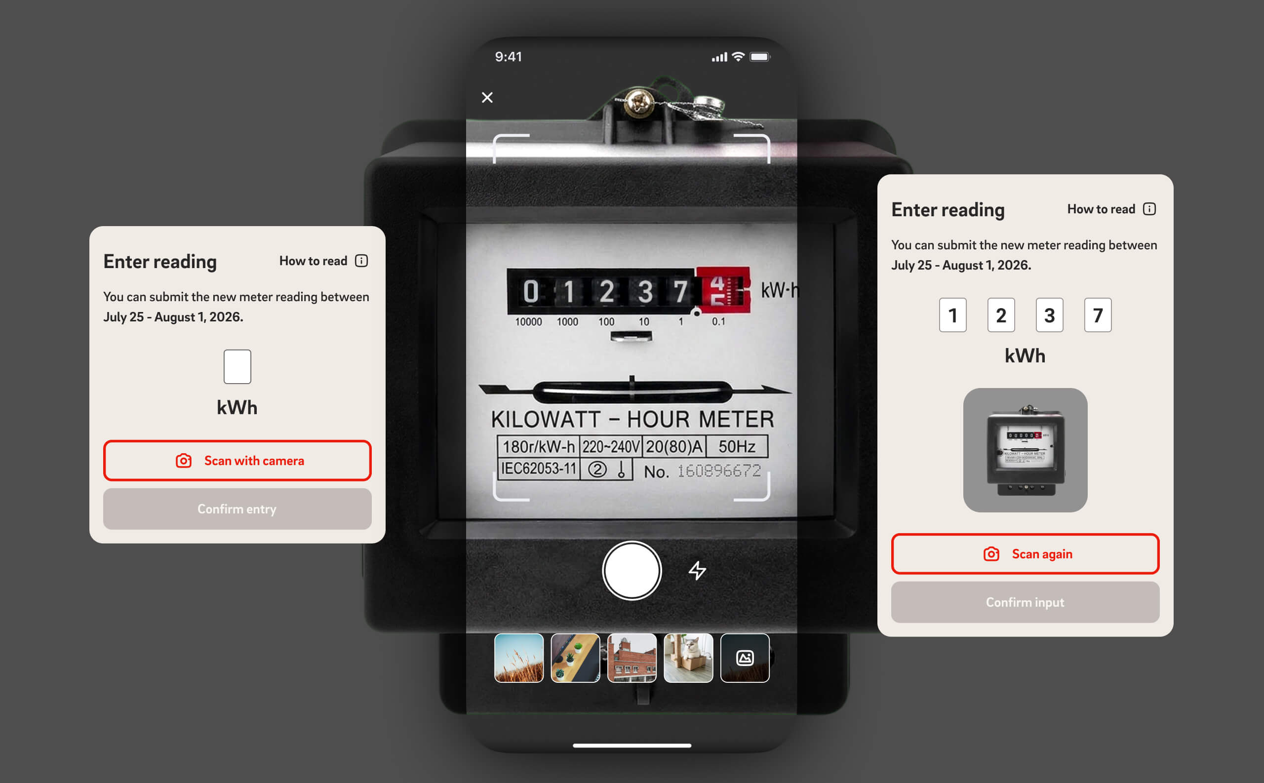 Users can now submit gas and electricity meter readings simply by taking a photo. A large language model processes the image, extracts the numbers from the meter, and pre-fills the submission form inside the app. This is especially useful when meters are located in difficult-to-reach places or when lighting conditions make manual entry inconvenient.