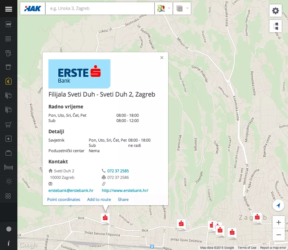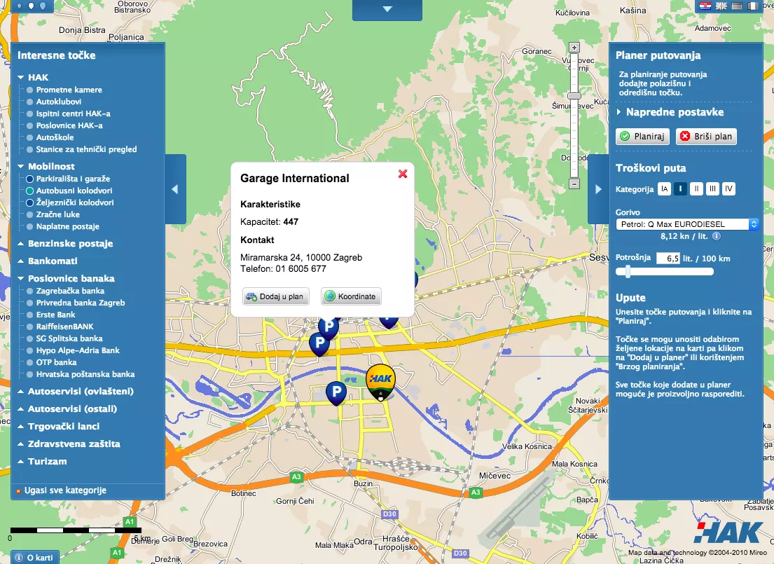 HAKmap is an interactive map of Croatia, designed to help drivers, especially tourists, plan their journey, find places of interest like fuel stations, shopping centers or post offices, and get up-to-date info on the traffic situation, road works or weather. Think of a more feature-rich and better-looking ViaMichelin, but designed to work best within Croatian borders.