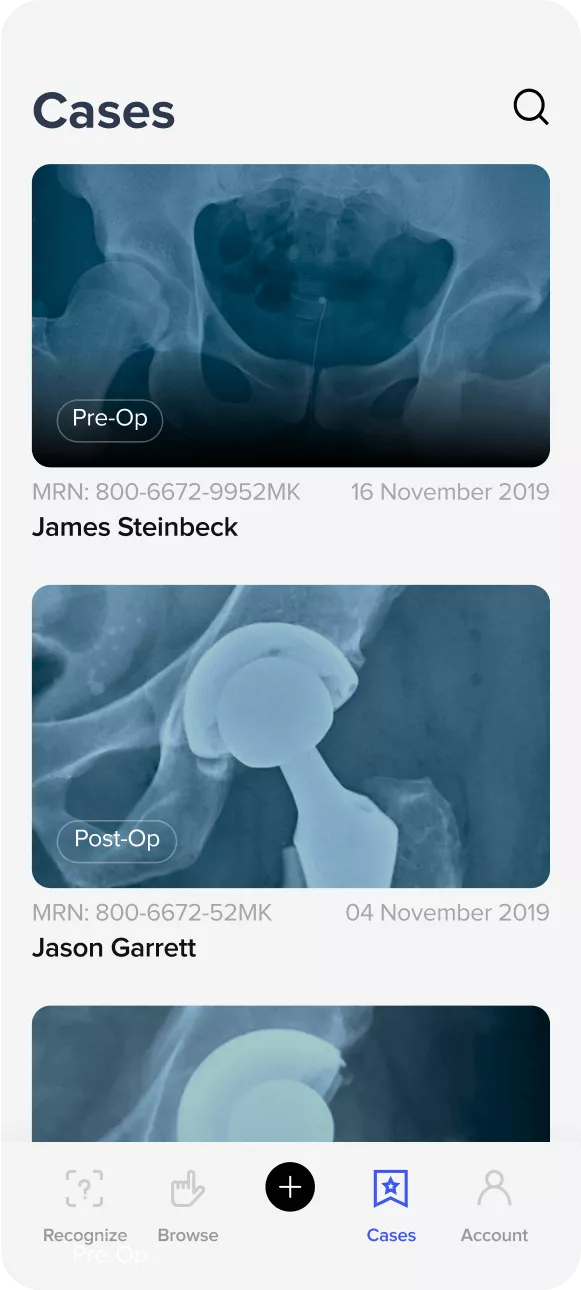 This is accomplished by cross-referencing an implant’s X-ray image against a database of implant silhouettes. Based on machine learning algorithms, the app becomes better at implant identification with every image uploaded into the system.