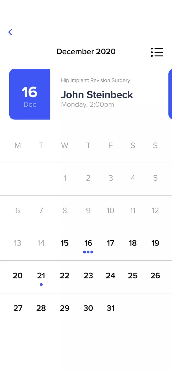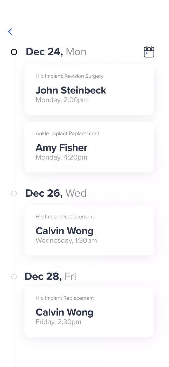 The app allows surgeons to spend less time on pre-operative planning. They can view upcoming surgeries and easily coordinate with surgical teams.