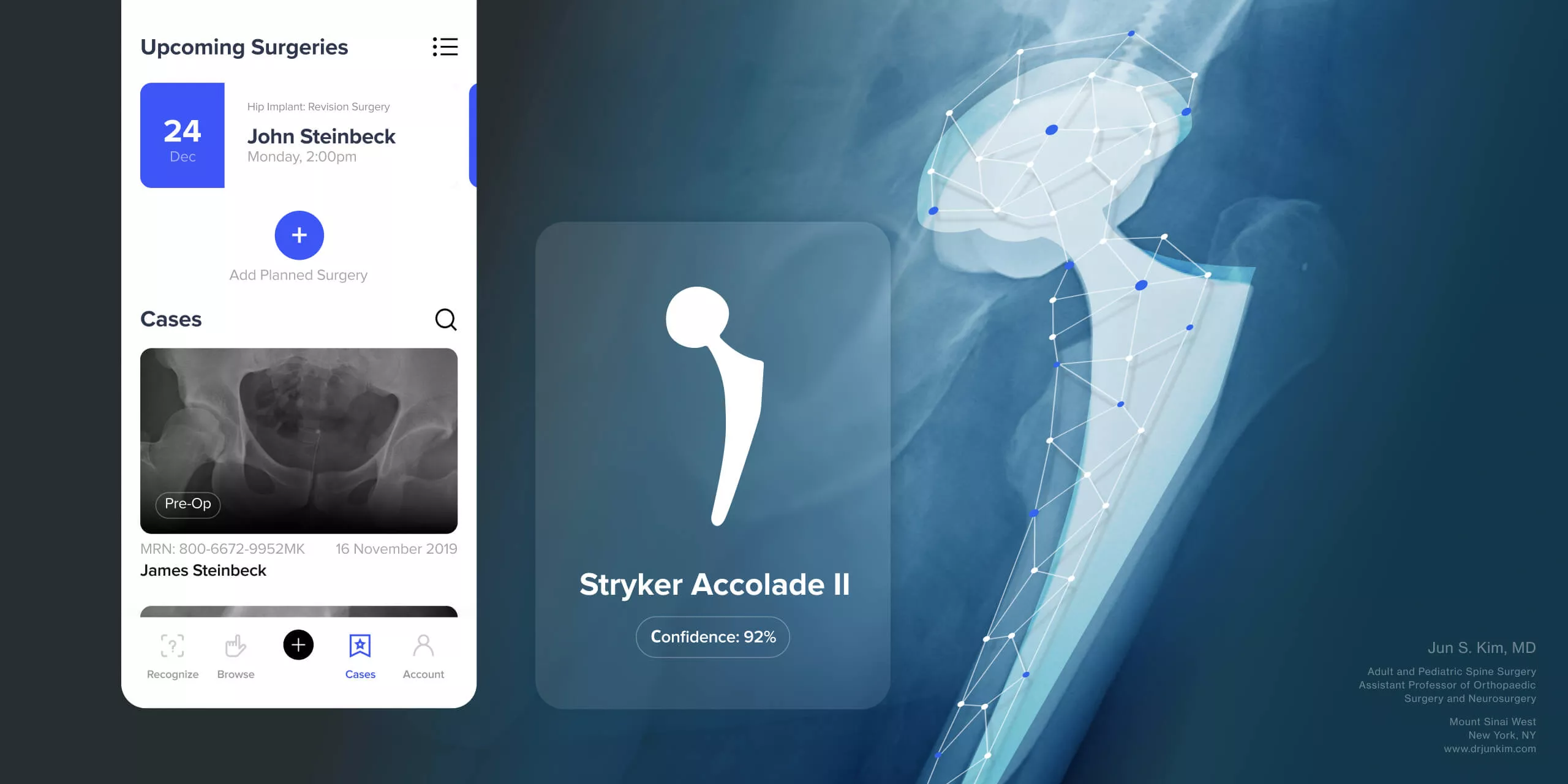 Once the implant is identified by the machine learning models, cases are evaluated by verified surgical team members.