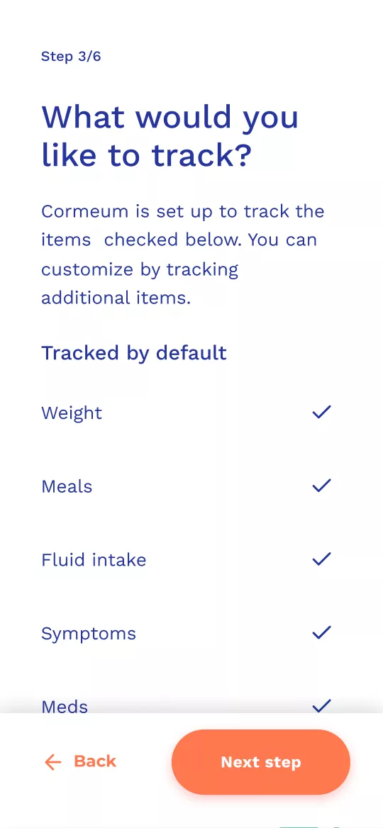 Unlike comparable apps, Cormeum focuses on tracking only what’s important, reinforcing patients’ habit of journaling, and sharing data with health providers.