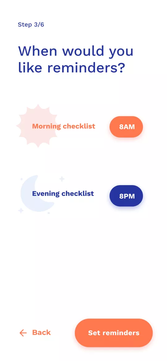 To validate our assumptions, we trialed the prototype with four cardiac arrest patients. We discovered their preference towards larger visuals and UI elements, a straightforward tone of voice, and a streamlined morning/evening tracking routine.