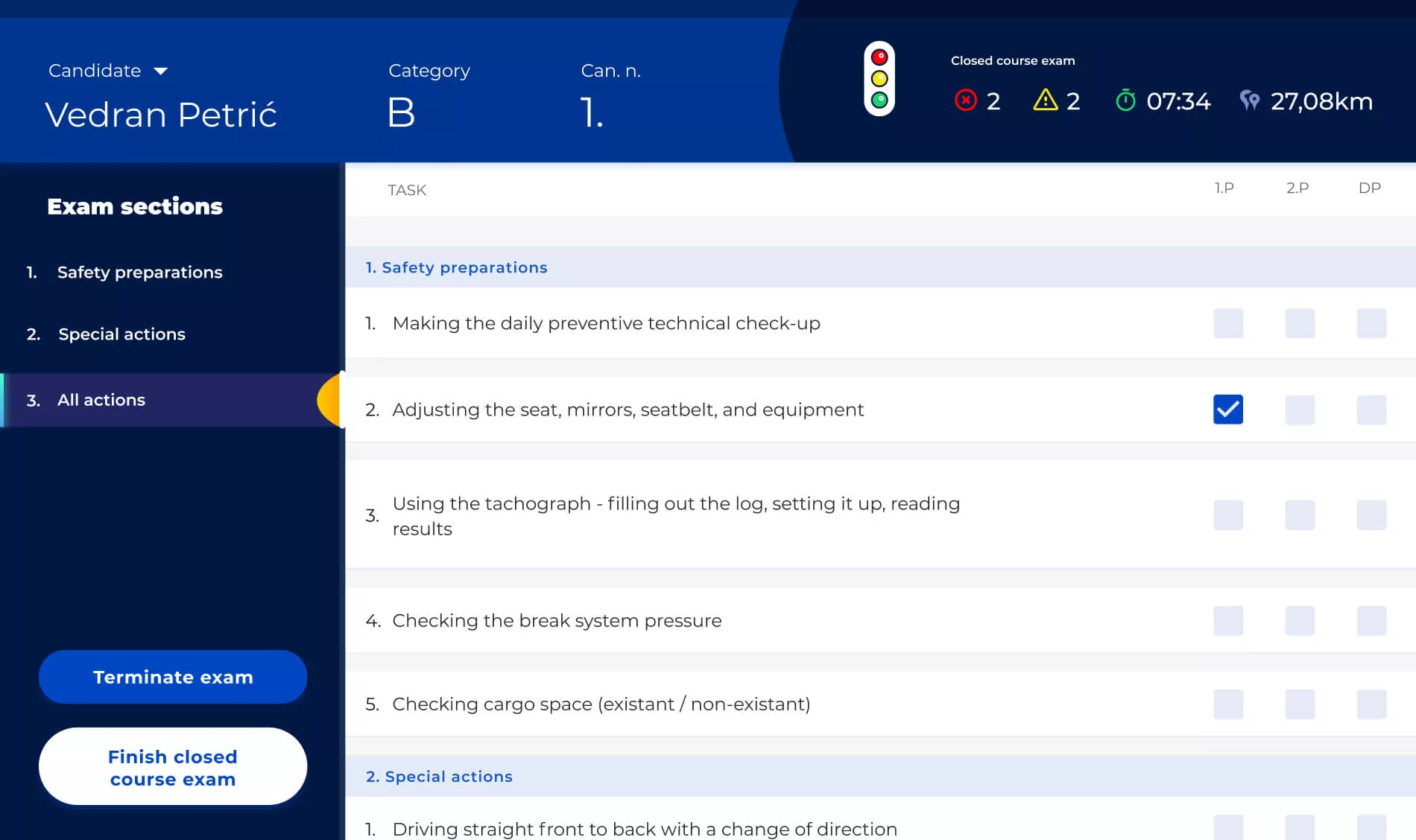 During a typical driving exam, the examiner has to go through a substantial amount of paper forms and checkboxes to evaluate the candidate’s skills, all the while watching the road, signs, traffic, and the candidate’s behavior.