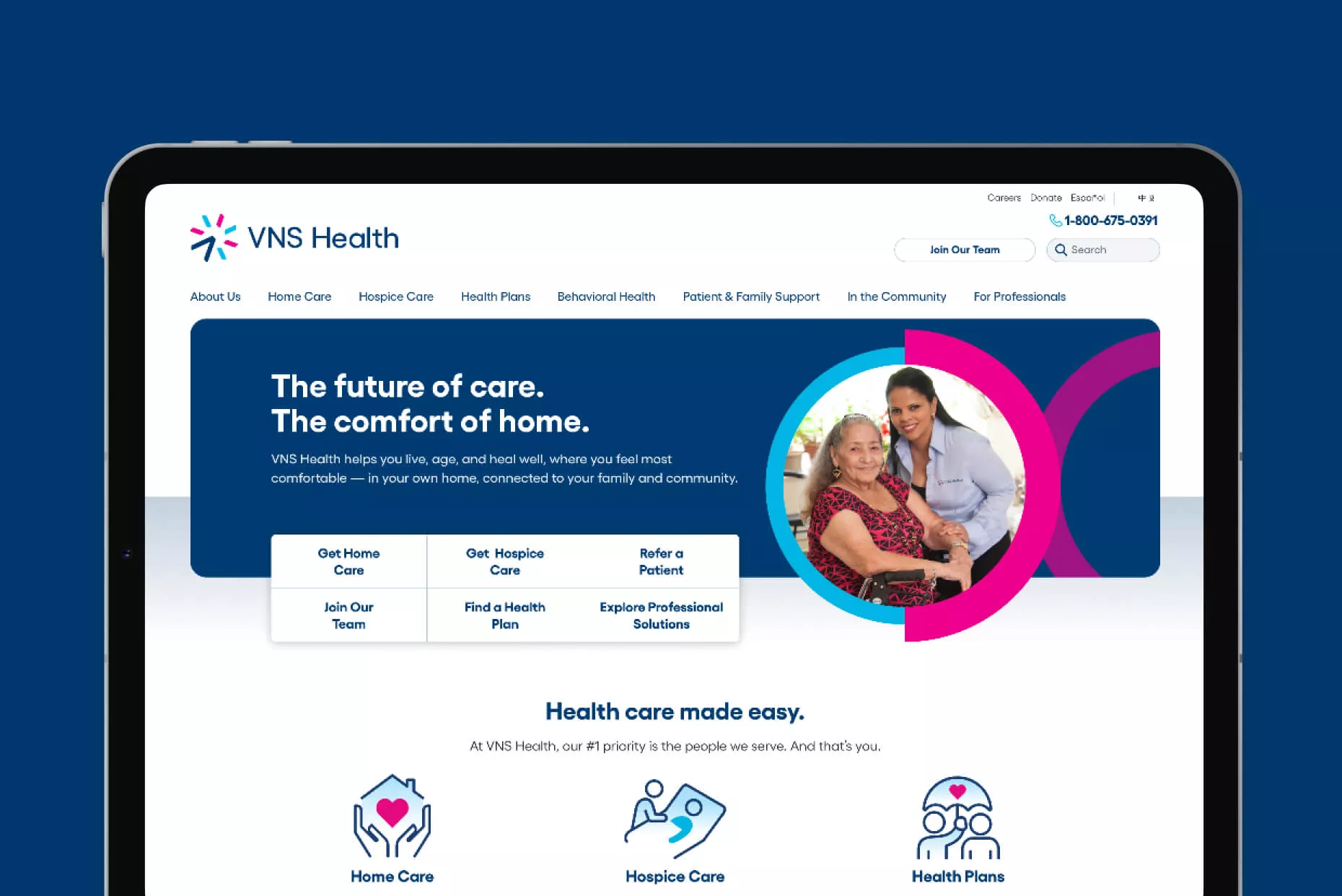 We streamlined the UX and integrated VNS Health’s new brand identity across its web platforms, helping caregivers and professionals access the information they need.
