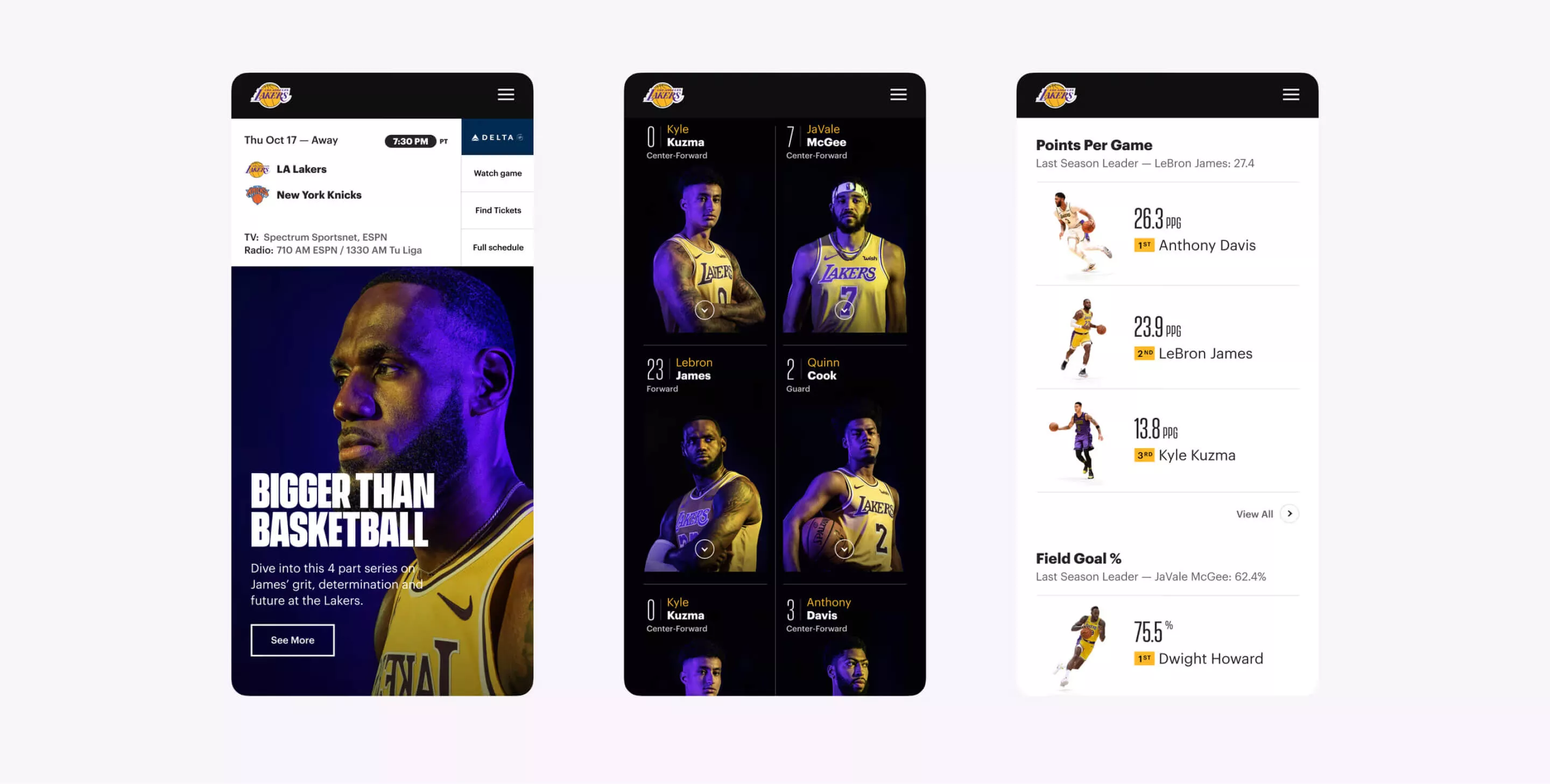 We were selected to lead the strategy, design, and development of a brand-new Lakers.com.