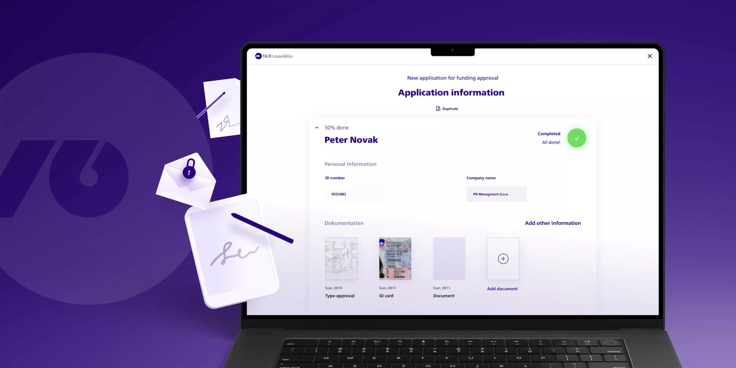 NLB Lease&Go is a part of the NLB Group, the largest Slovenian international financial group. They provide financing and leasing services for vehicles, vessels, construction machines, IT equipment, and other assets. The leasing process used to be bureaucracy-heavy, inefficient and demanded physical presence.