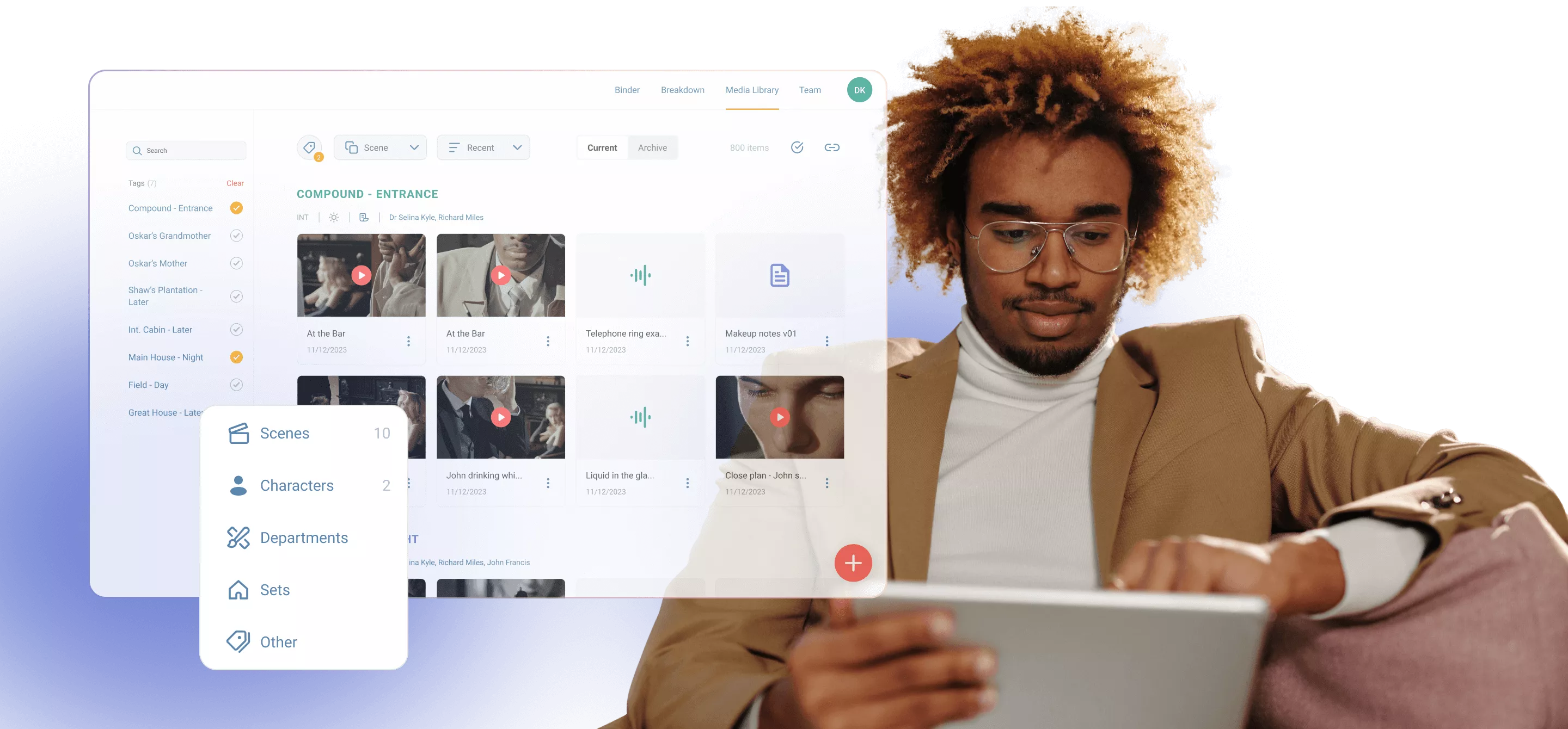 Effortless transitions between script, script breakdown, and media library streamline workflows and empower creatives to deliver their best work.