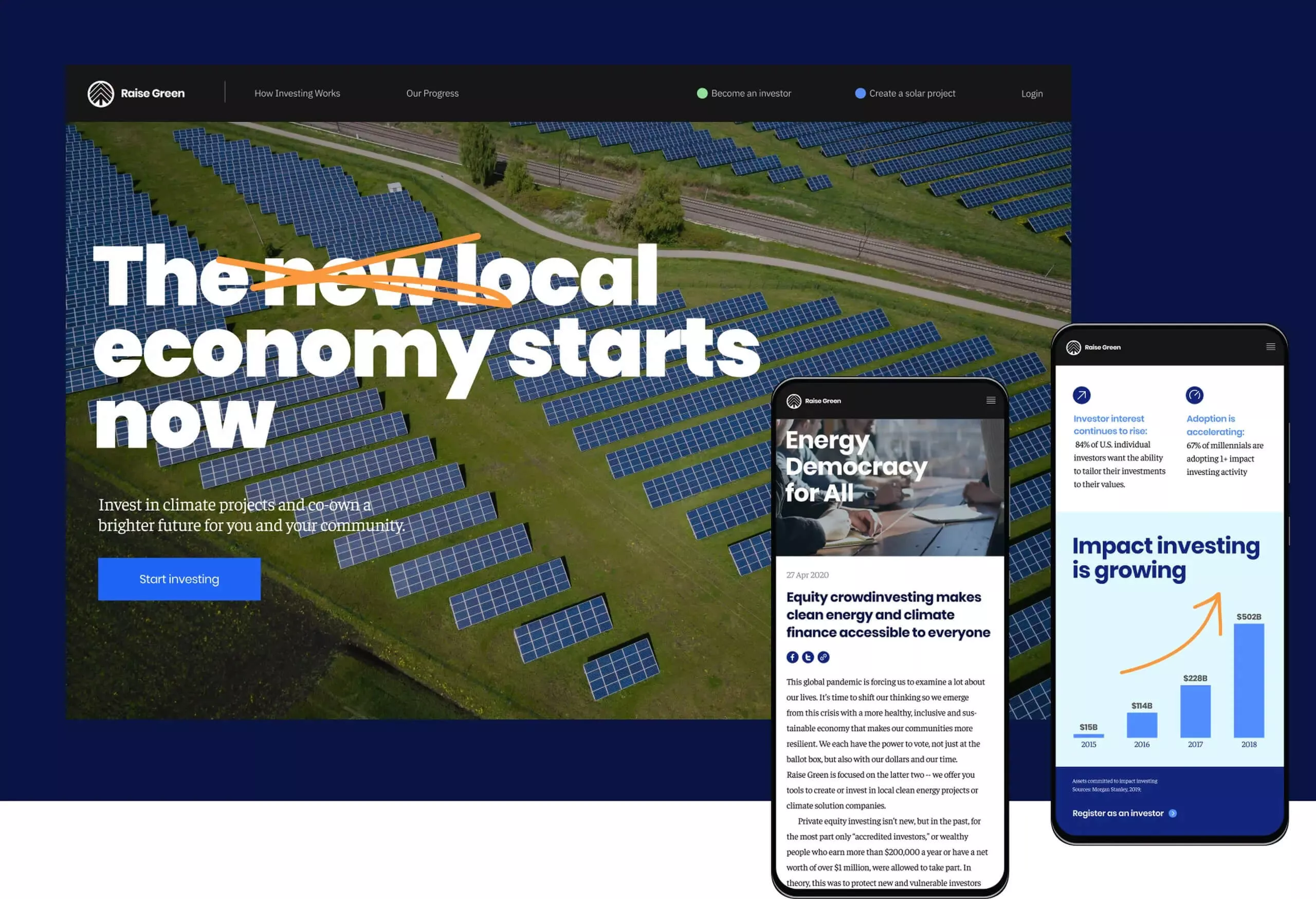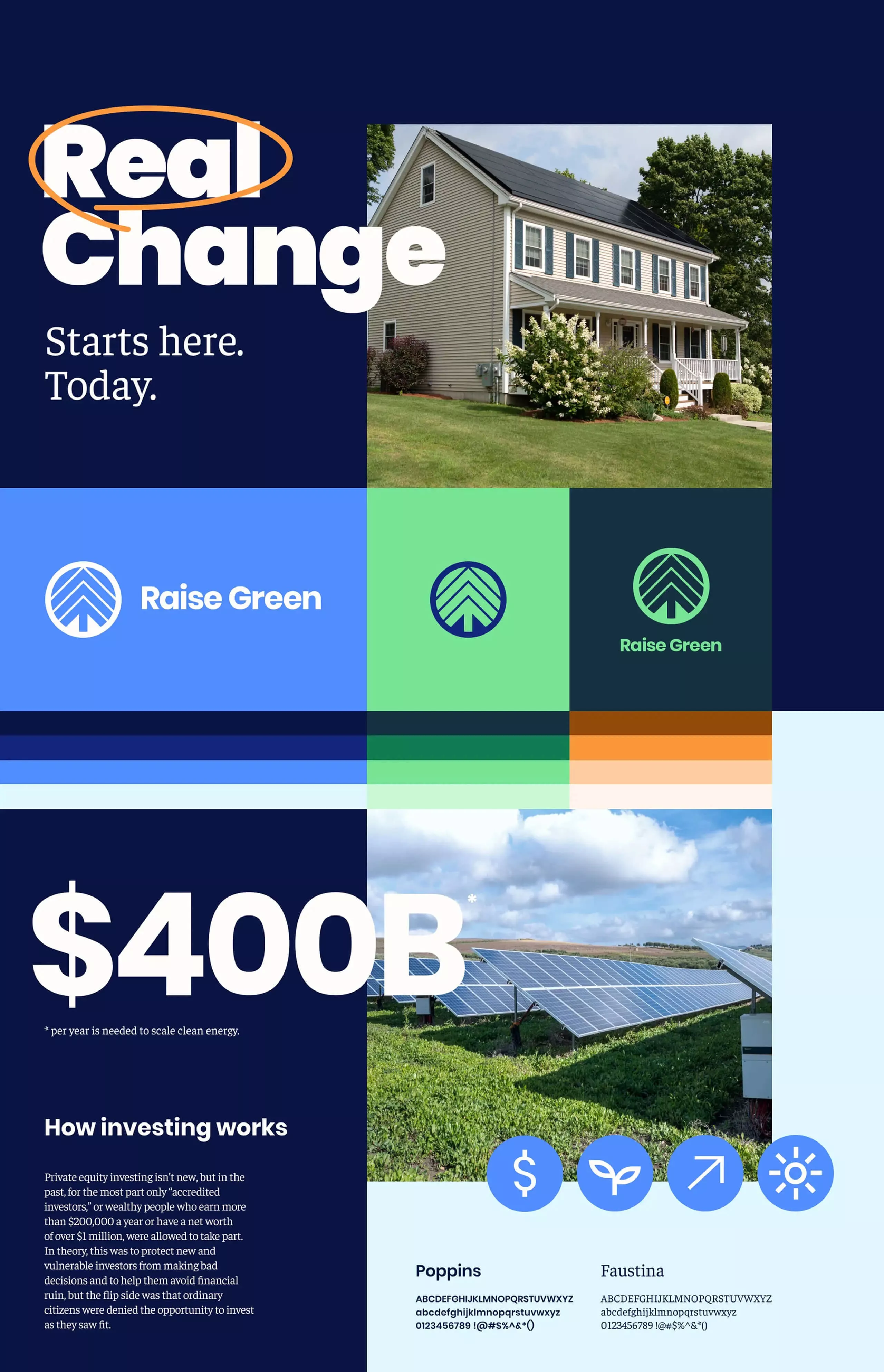 Raise Green helps make investing in these solar projects accessible for everyone in local communities. We were tasked with creating a stand-out brand identity and developing a go-to-market strategy.