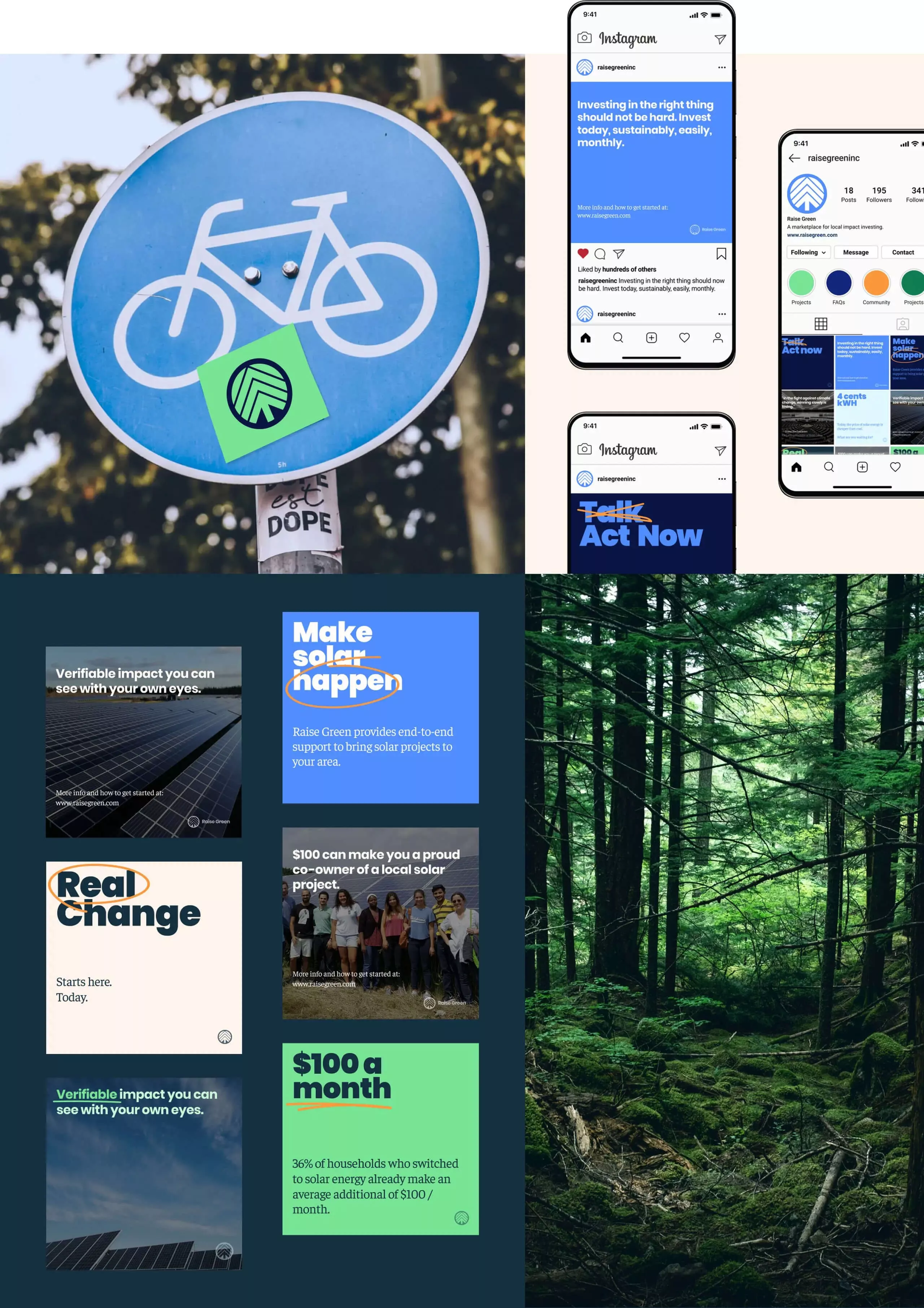 Raise Green partners with local leaders to initiate solar projects in their communities, making investment in these projects accessible for everyone. We were tasked with creating a brand identity that sets them apart and developing their go-to-market strategy.