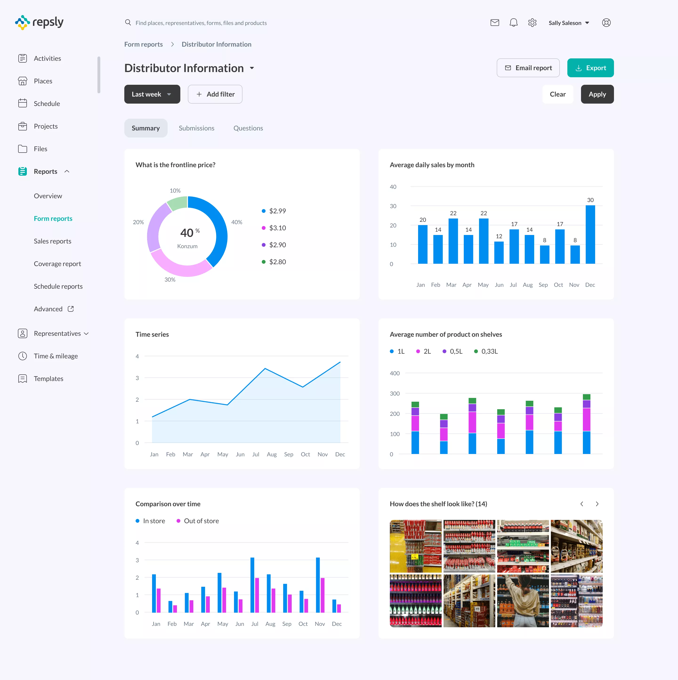 Diving into Repsly usage data, we singled out the reports users interact with most. Knowing this information helped us build an enhanced reporting experience.