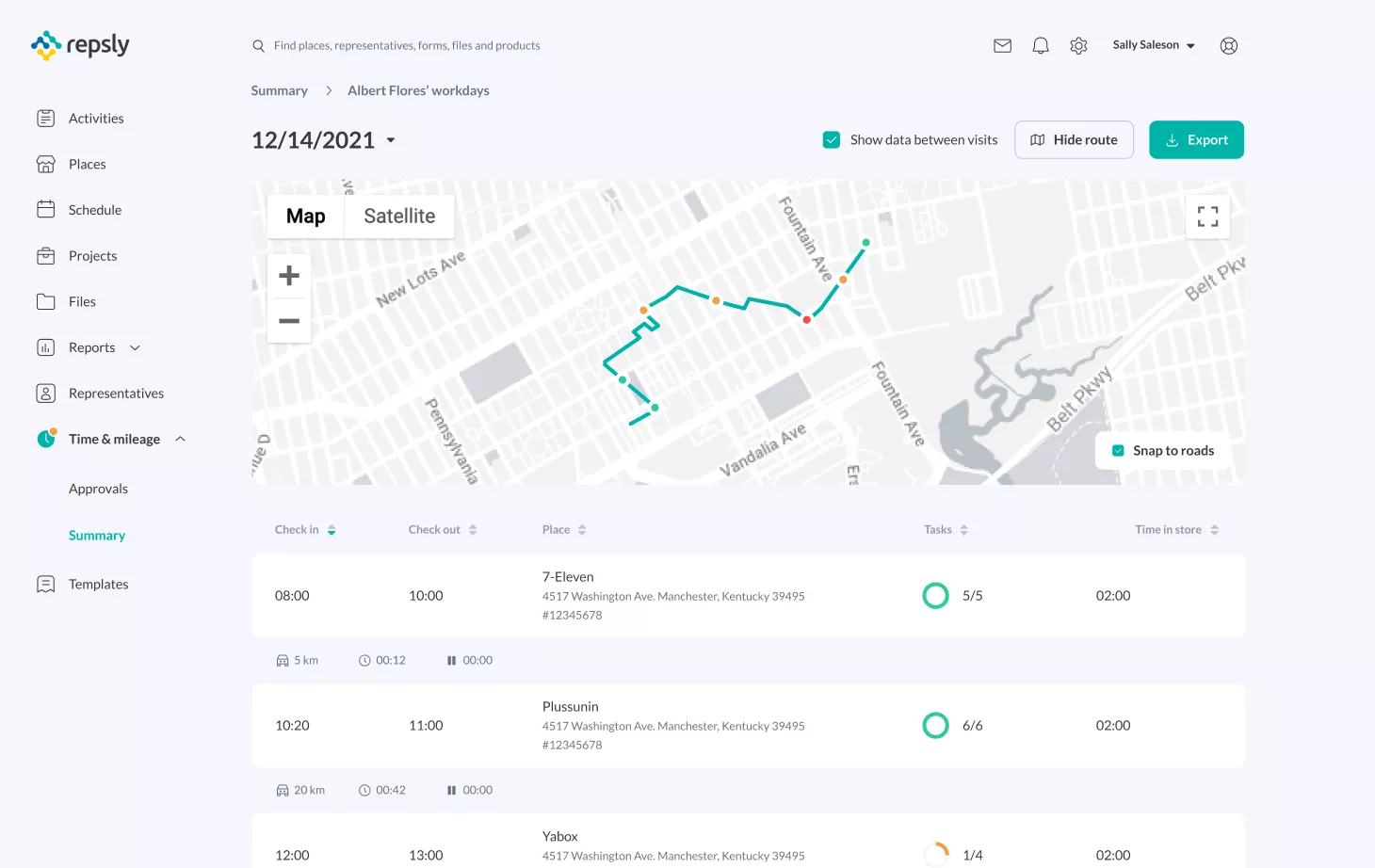 One statistic stood out in analyzing Repsly usage as important and most commonly used: the whereabouts of sales representatives. With this insight, we decided to turn time and mileage into two separate features. We’ve achieved better insights, and a greater level of transparency.